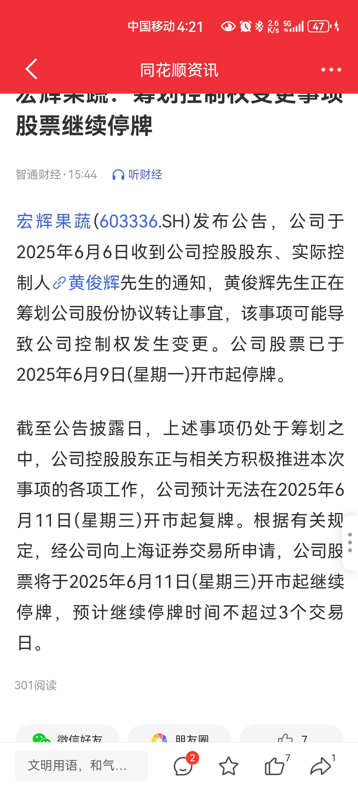 我也有看到这个传闻。不是停牌不超过两天吗,没看到新公告。