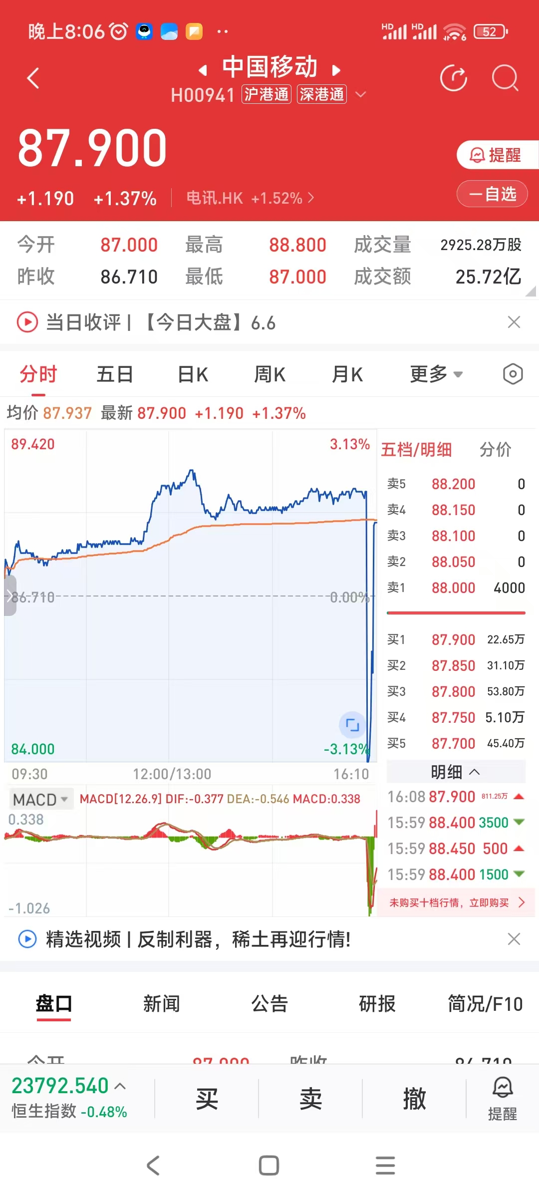 请教个问题港股在16点后进入进入收市竞价阶段,比如6月6号这天中移动在这时间段内下杀到84元,问一下这个价格买得到吗?这时的委托是不是要用“竞价限价”,就算用“增强限价”挂85也买不到吗?