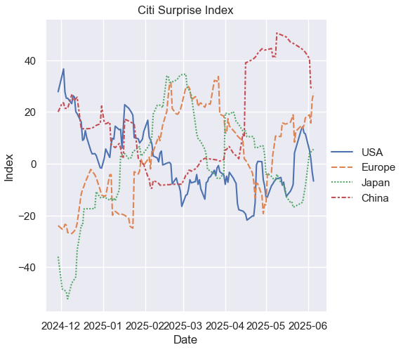 花旗经济意外指数:中美同时转弱,欧日边际转强