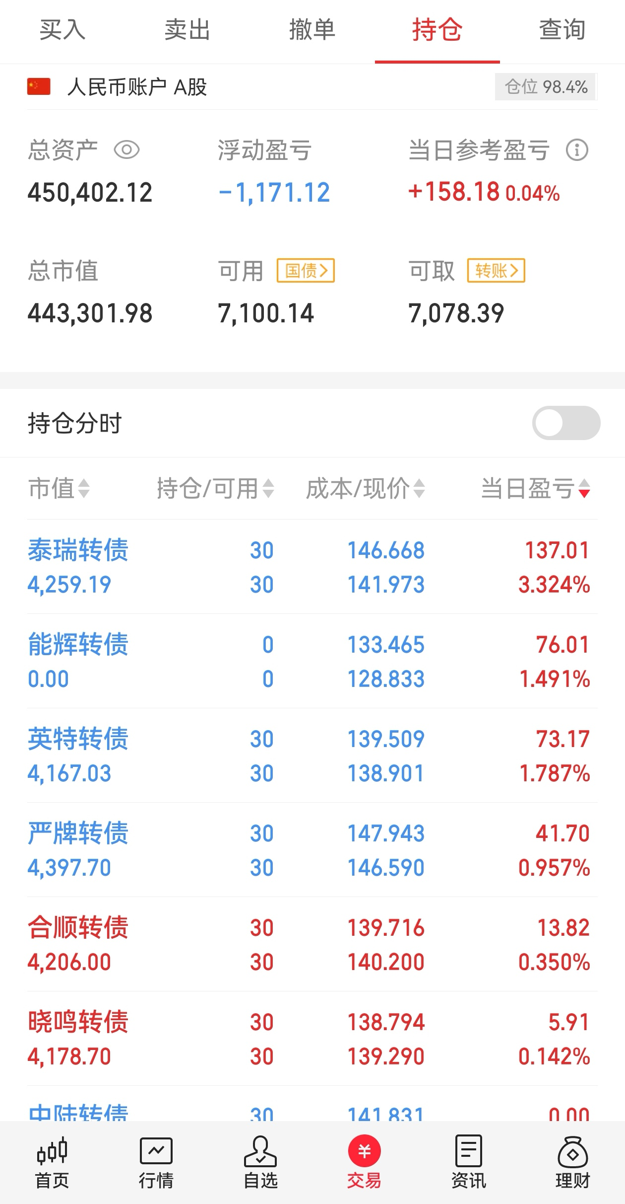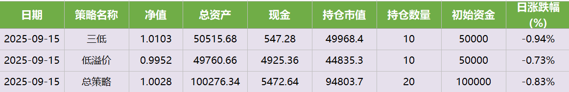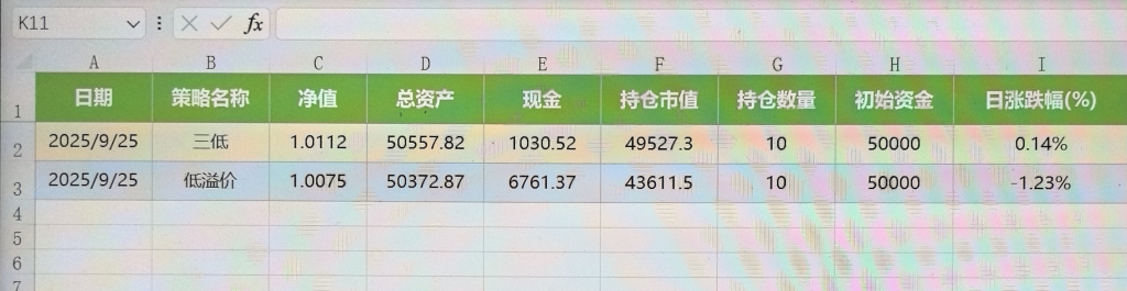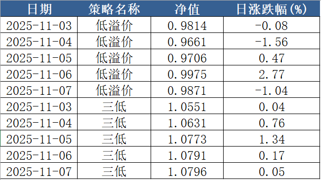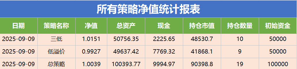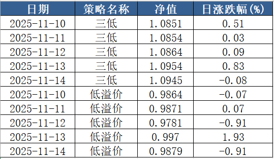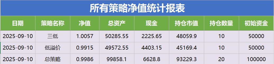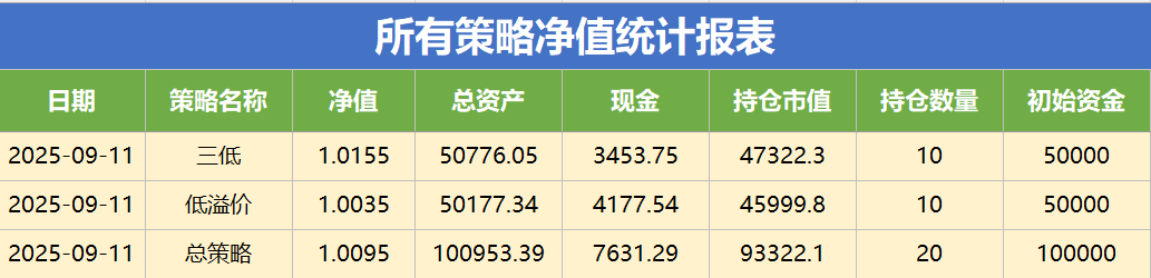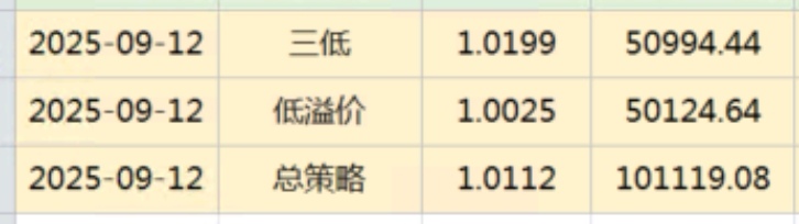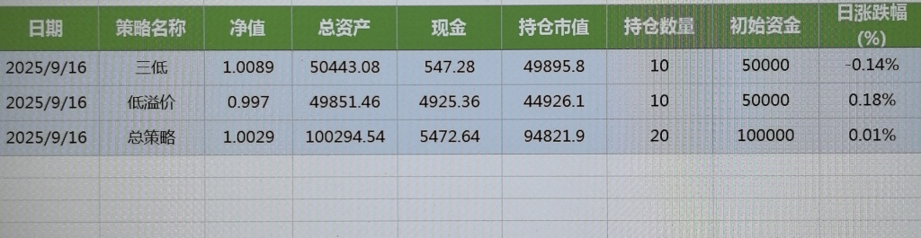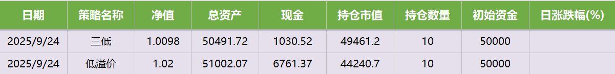目前运行2个策略,策略一:三低,策略二:低溢价,两个策略初始资金均为5万元,目前总共投入45万元,35万元做国债逆回购,择机再增加不同策略。