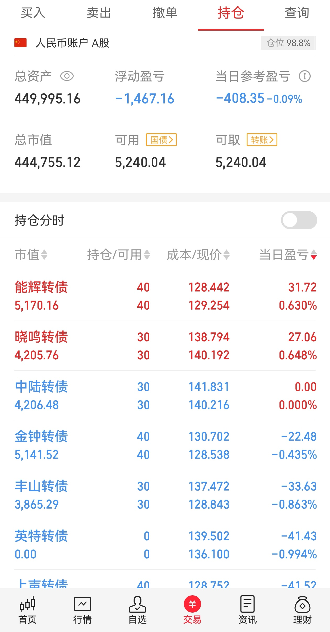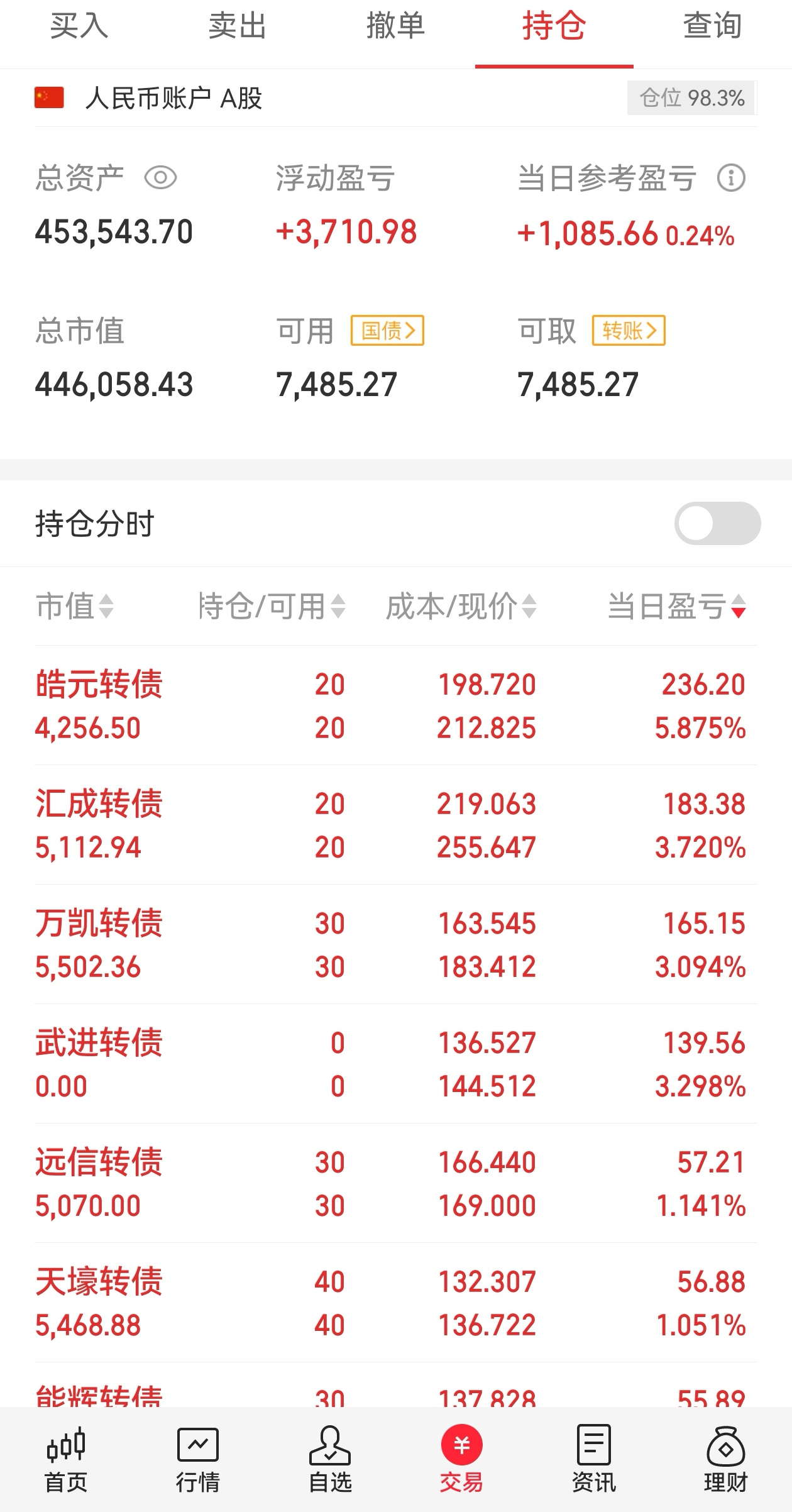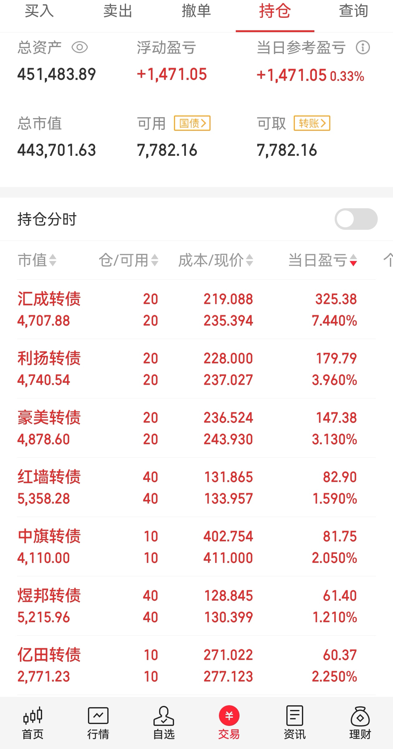 目前运行2个策略,策略一:三低,策略二:低溢价,两个策略初始资金均为5万元,目前总共投入45万元,35万元做国债逆回购,择机再增加不同策略。