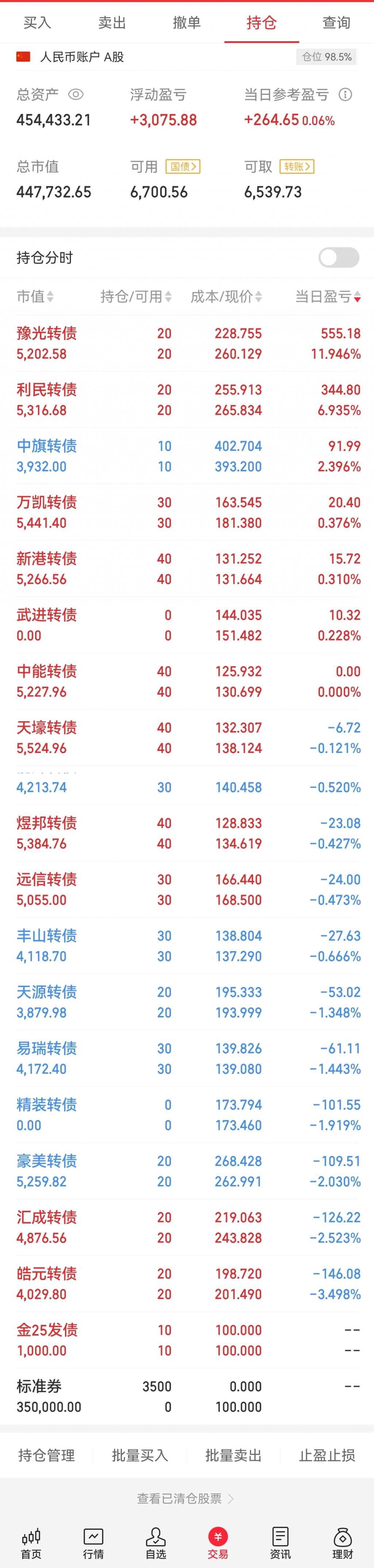 追更了一段时间,请教楼主,低溢价的债同时是不是也接近于低波动?感觉自从改变策略后,每天的盈亏就变小了很多。