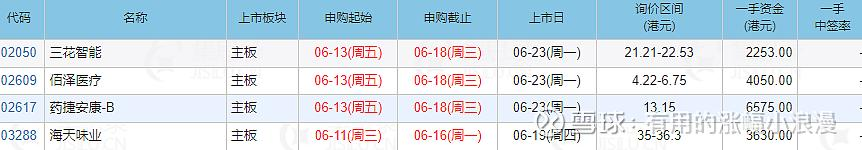 三,港股打新 海天味业(下周三只新股申购)