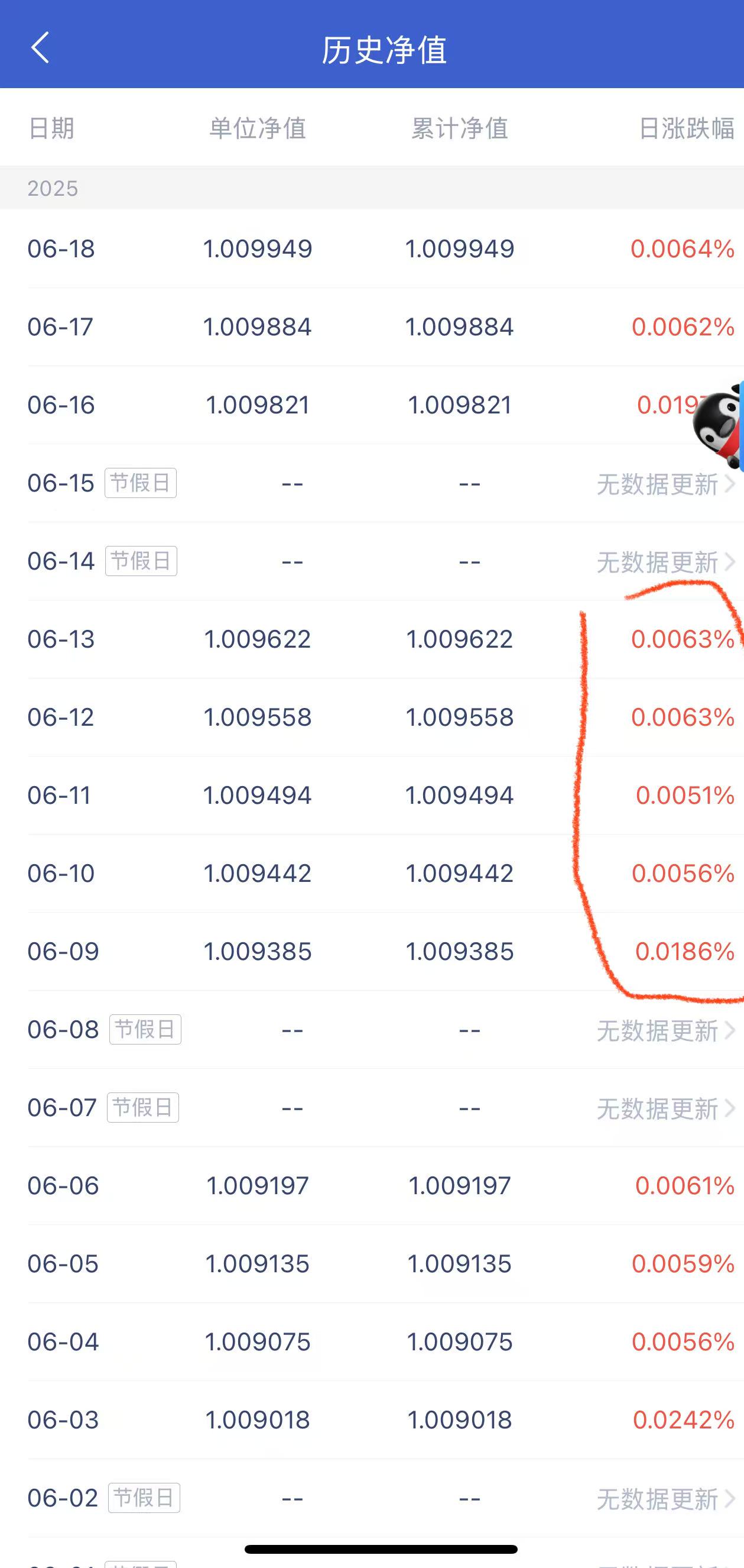 一周净值增加大概万4.2,按7天算,大概年化2.16%