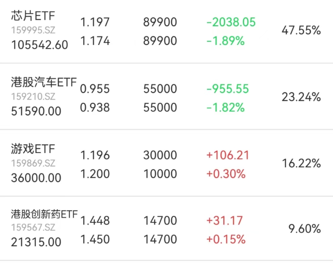 三,ETF和LOF基金 减仓芯片ETF 加仓香港汽车ETF和游戏ETF ,关注政金债511520(今年收益偏低)