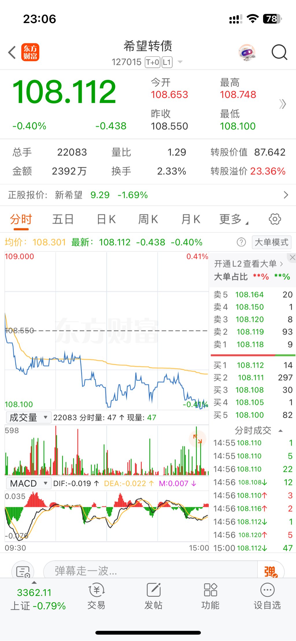 辛辛苦苦骗来的钱凭啥还? 总要想法赖掉。 希望转2和希望转债的转股价一样,剩余规模大得多,81亿,这个总要解决的,正股股价比转股价还差12%,借牛市肯定要解决转2的问题,顺便转1就搭车解决了。