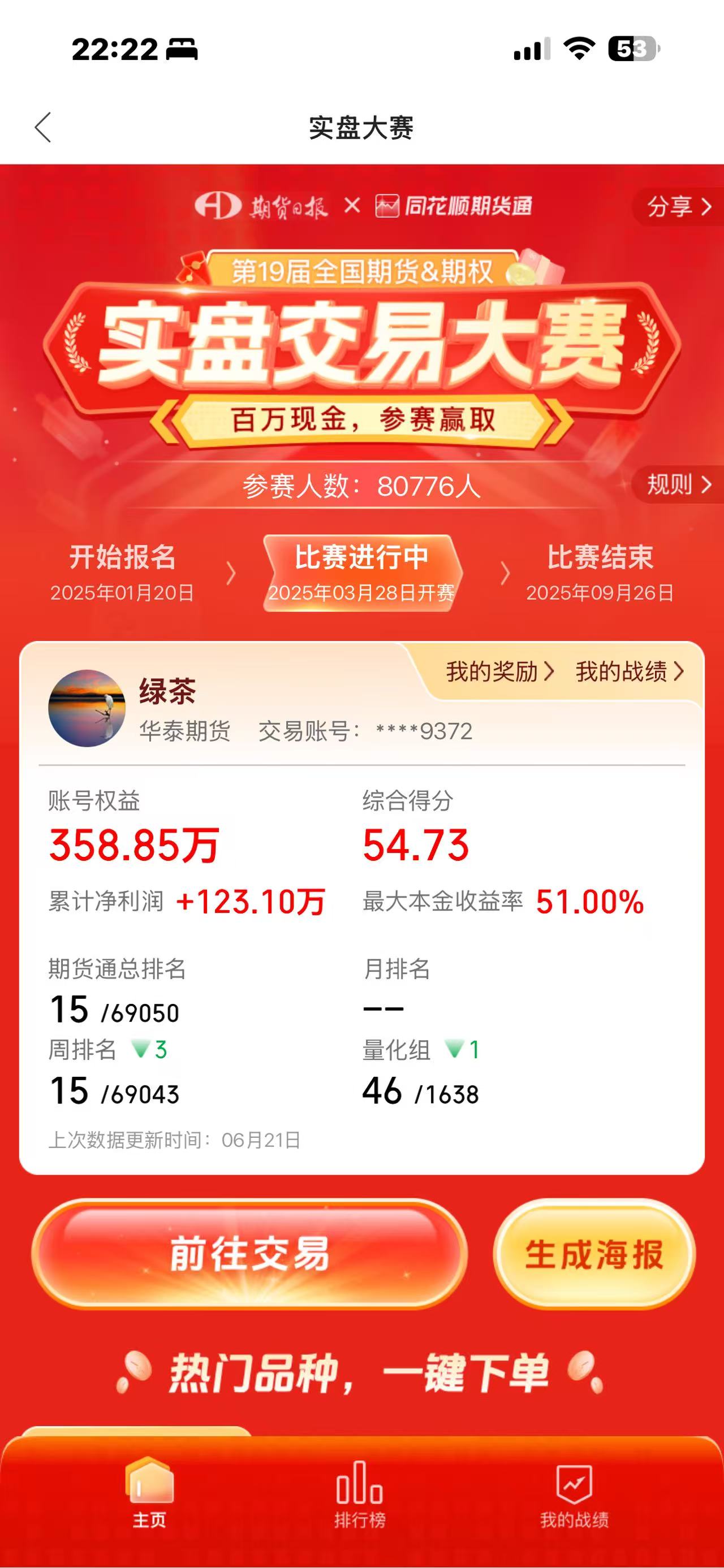 到了6月18日换月时,浮盈重新来到了18万(他自己T0的亏损没计算在内),