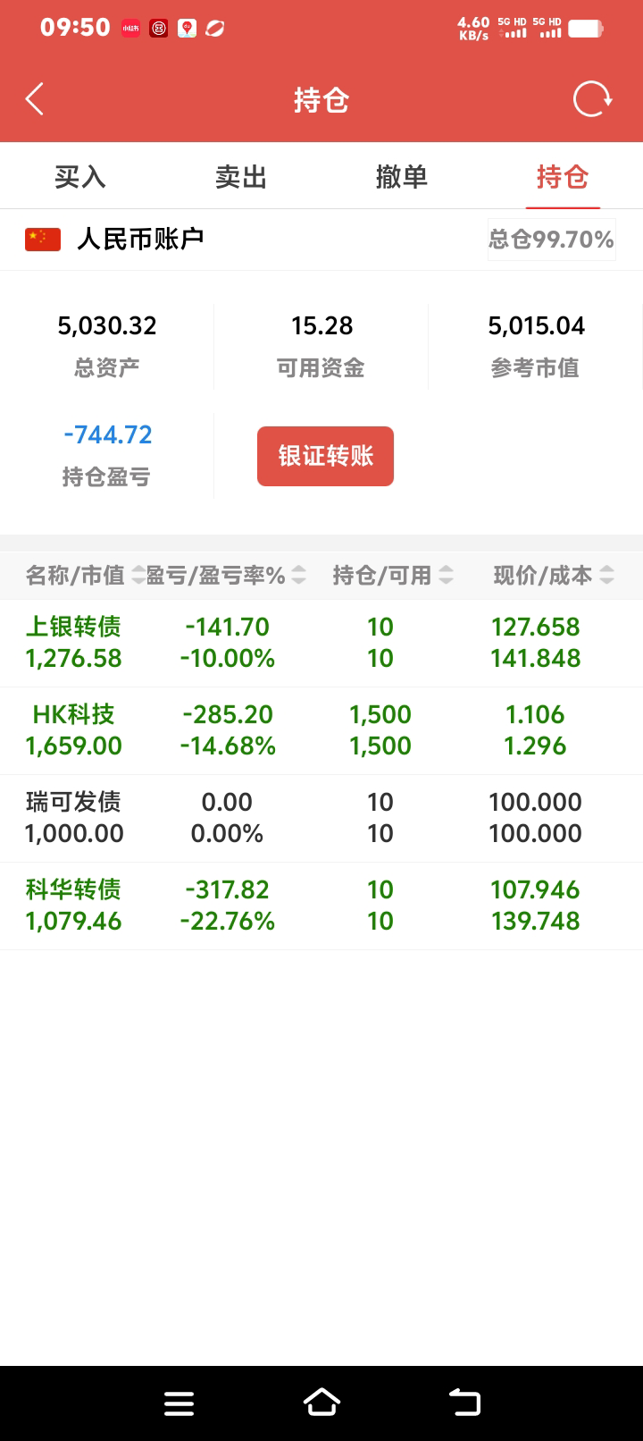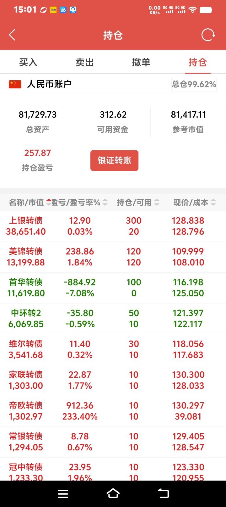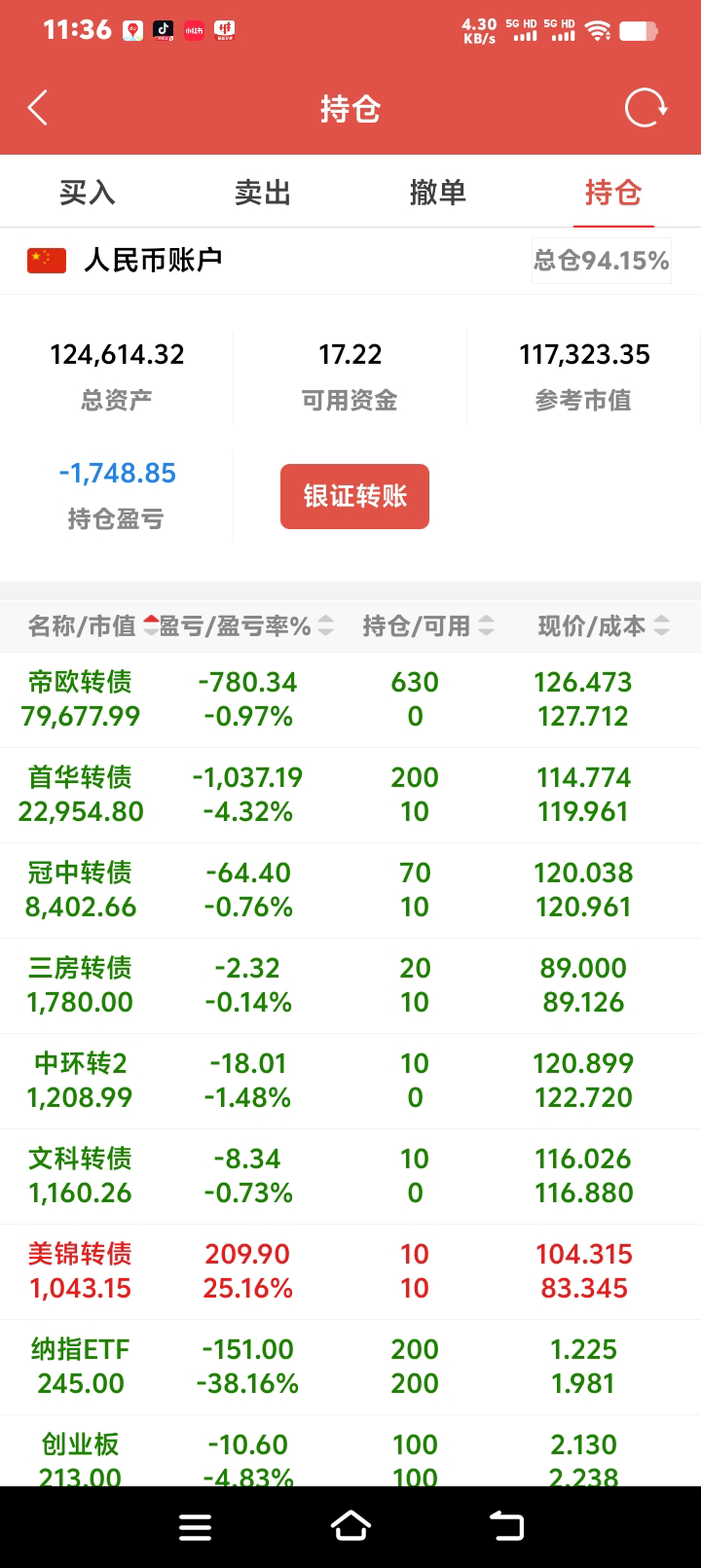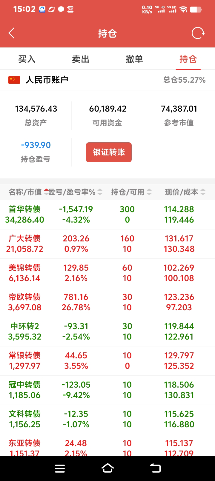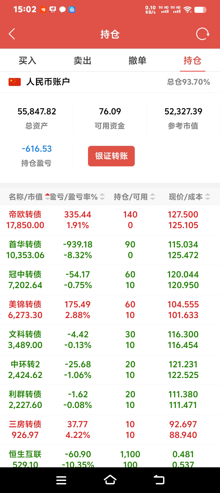 昨天减仓了。今天转出资金了。帝欧转债也做红了。这持仓有哪些问题,欢迎留言或者私信指教!