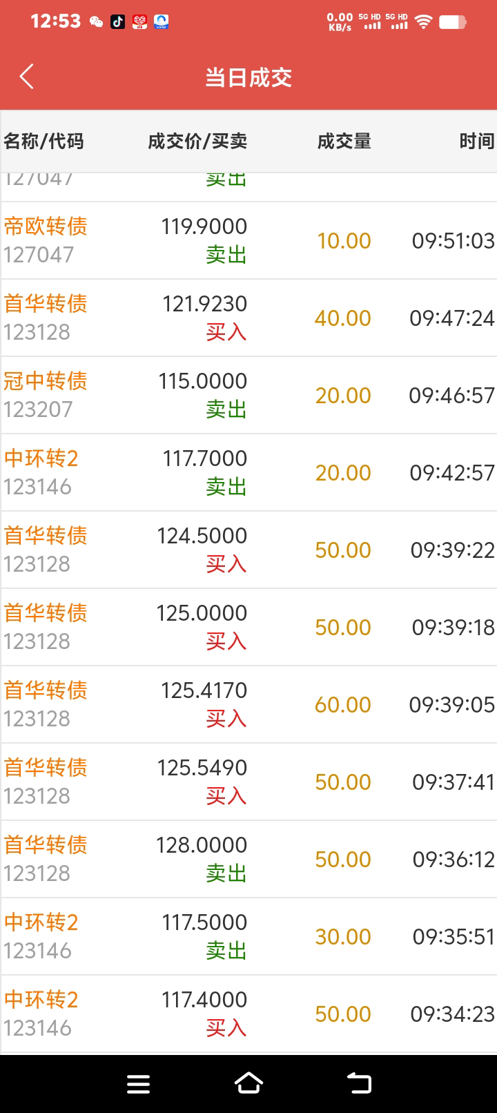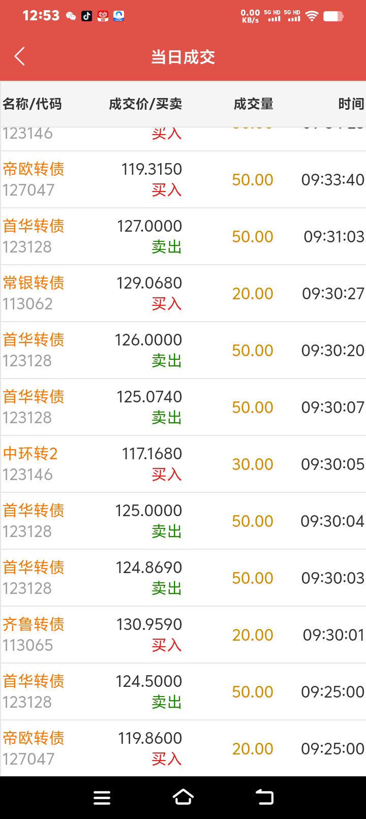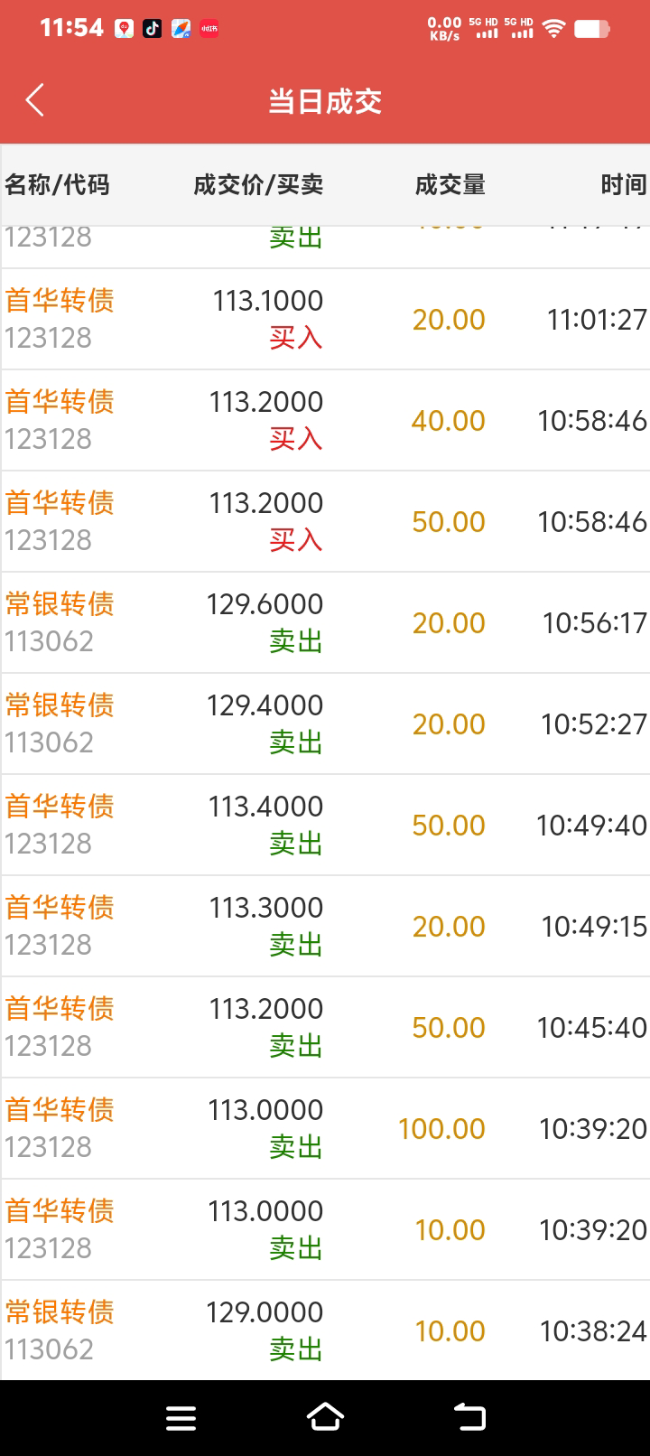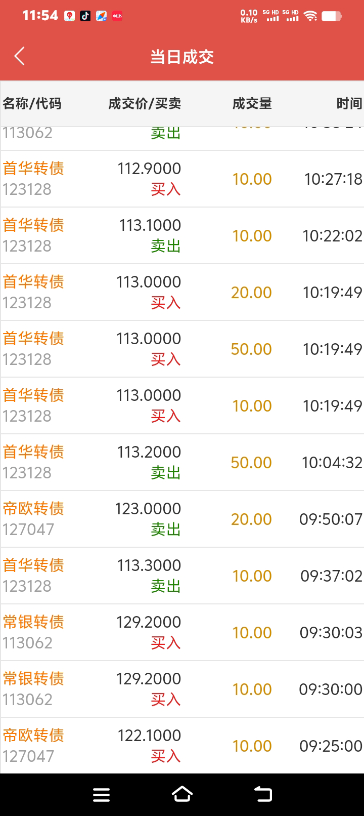 今天减仓操作。今天在思考,为什么首华转债与帝欧转债,在较大盈利时又会出现较大浮亏。都是同一个问题,在出现负溢价时,主动加仓太多!以后要建一个规则,130以上的严控仓位,125以上的注意安全。明天退出资金,以表以后行动要改变。