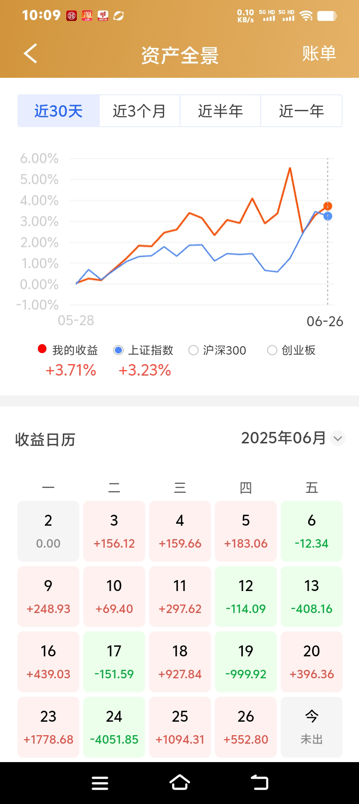 上午表现不错,在不断止盈的模式下,持仓盈亏转红,说明盈利良好。