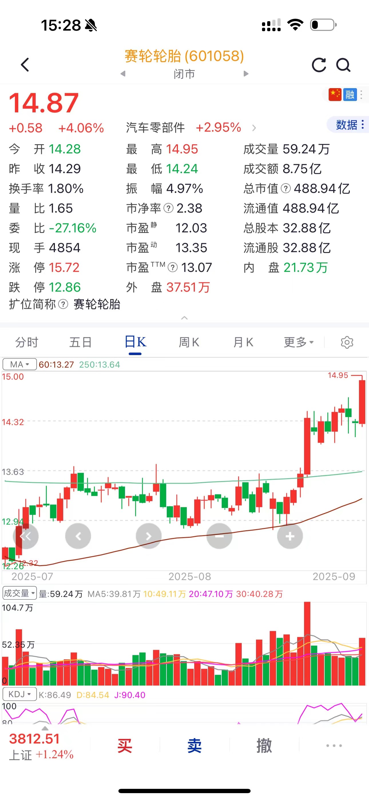 - 赛轮和新和成算是彻底打开新通道了,继续持有观察