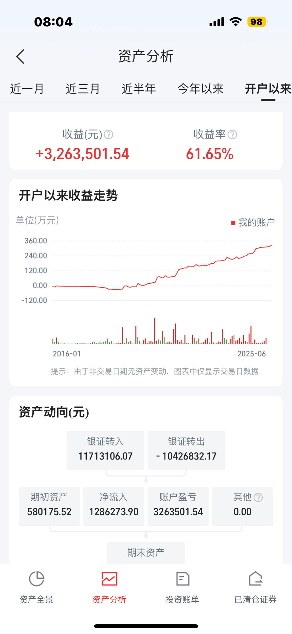 楼主稳的一批。不管风吹浪打,我自岿然不动。对投资的耐心值得学习!