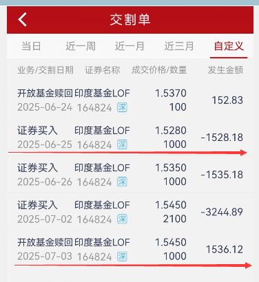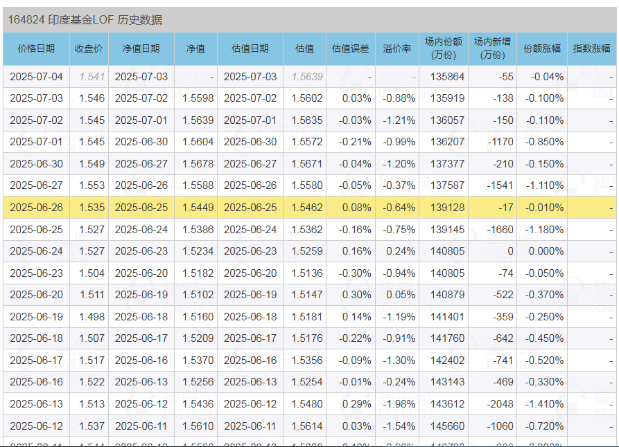 实际上,你要看的是6/25的价格相比6/25的净值的溢价率,而且上面显示的是收盘价,你实际卖出的价格不是收盘价,你的溢价率是 1.528 / 1.5449 - 1 = -1.16%