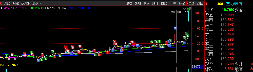 城地转债卖出后,逐步买入了塞力转债,最高的时候有2万张,昨天把最后的350张出完了,大部分卖出是在120元左右,留到最后高价的只有微小的一点仓位了,又一只好票离去,感觉很不舍;