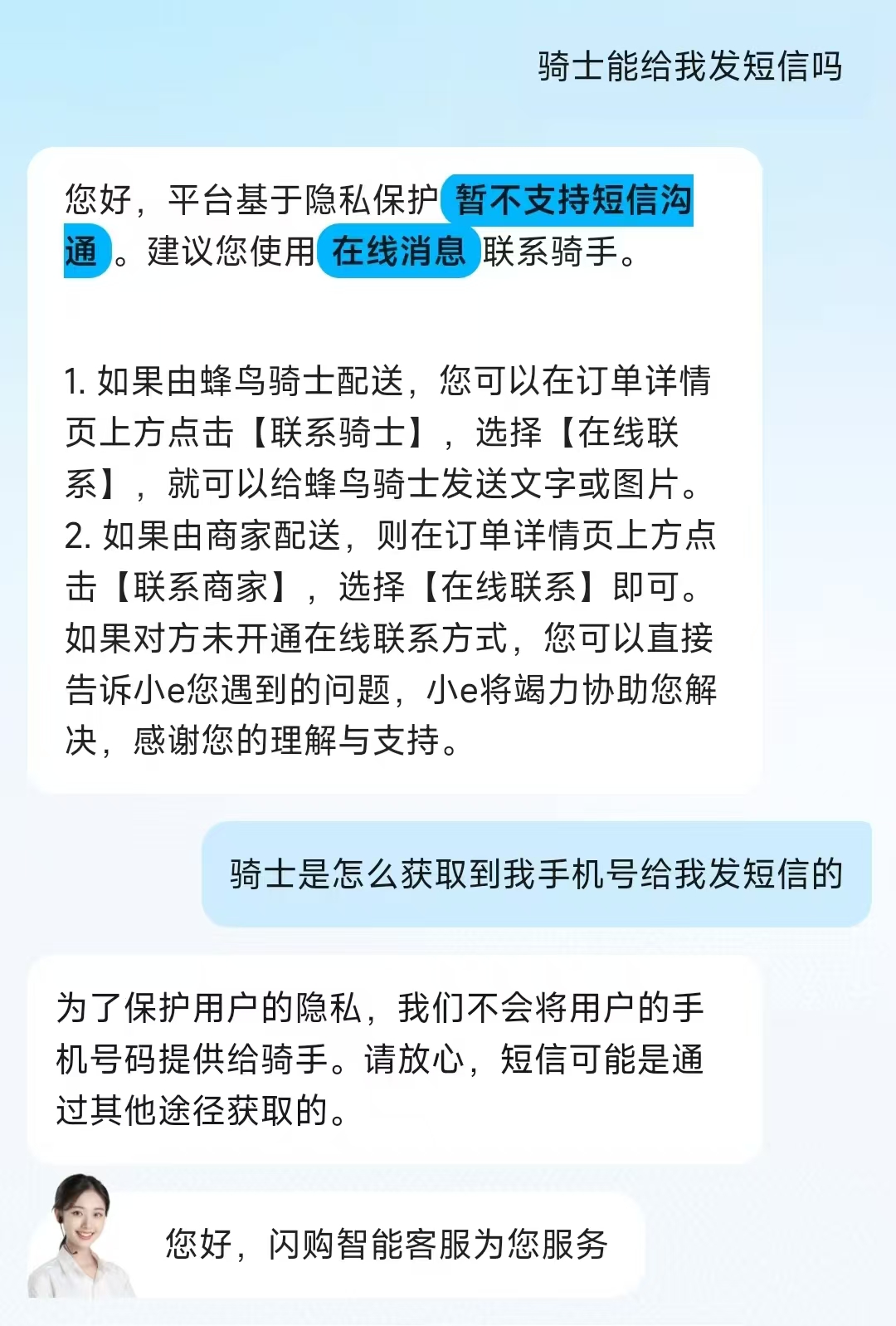 转念一想,又发现个槽点,他是怎么知道我手机号给我发短信的……于是咨询了下客服,回复是这样