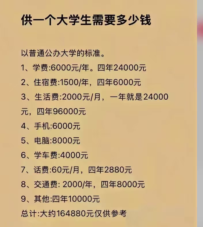 公办大学四年的费用预算,大家看是否合理四年16w费用对普通工薪家庭还是有压力的,大家觉得呢?。