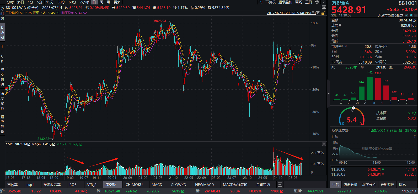 如果持续保持升高,达到2万亿以上,则是天量天价,一旦缩量,也就见到了短期高点了。