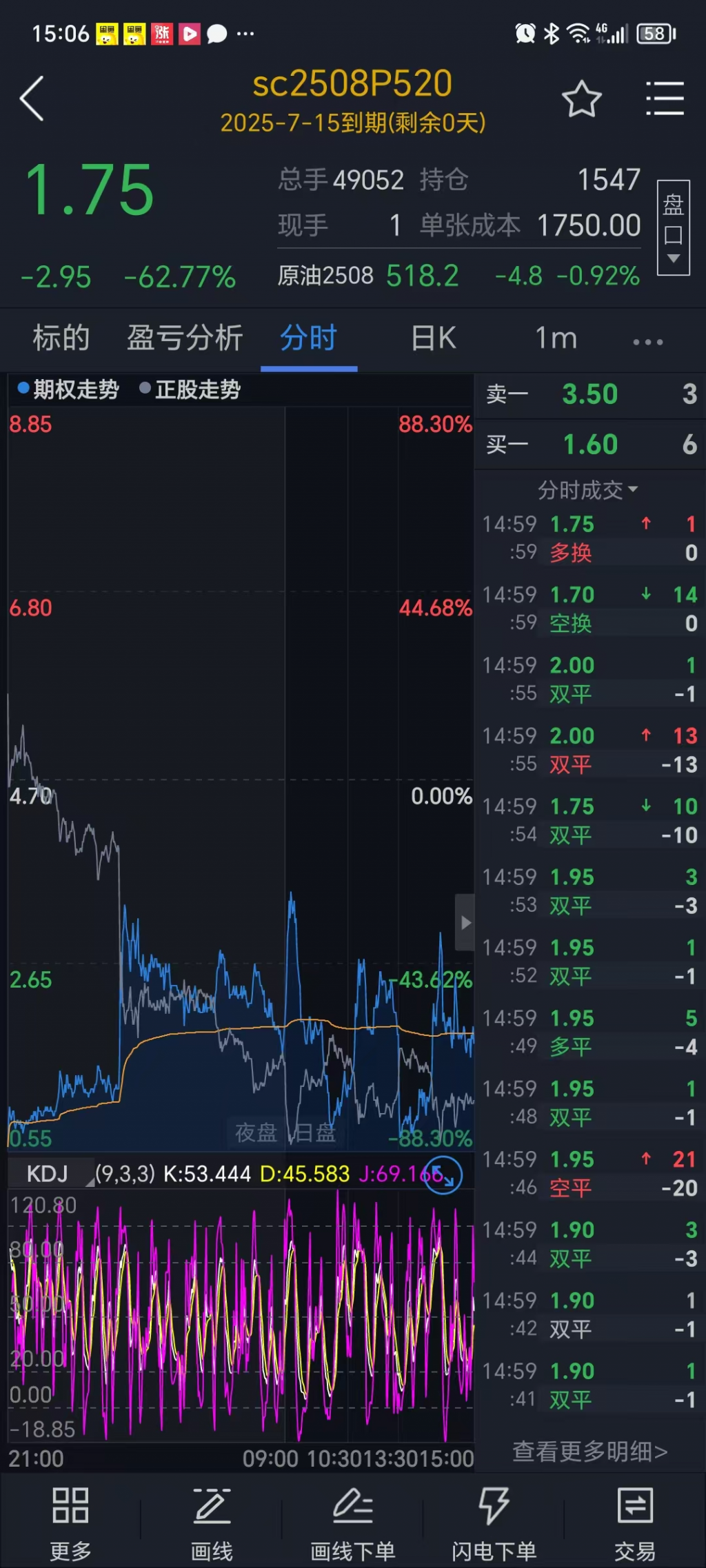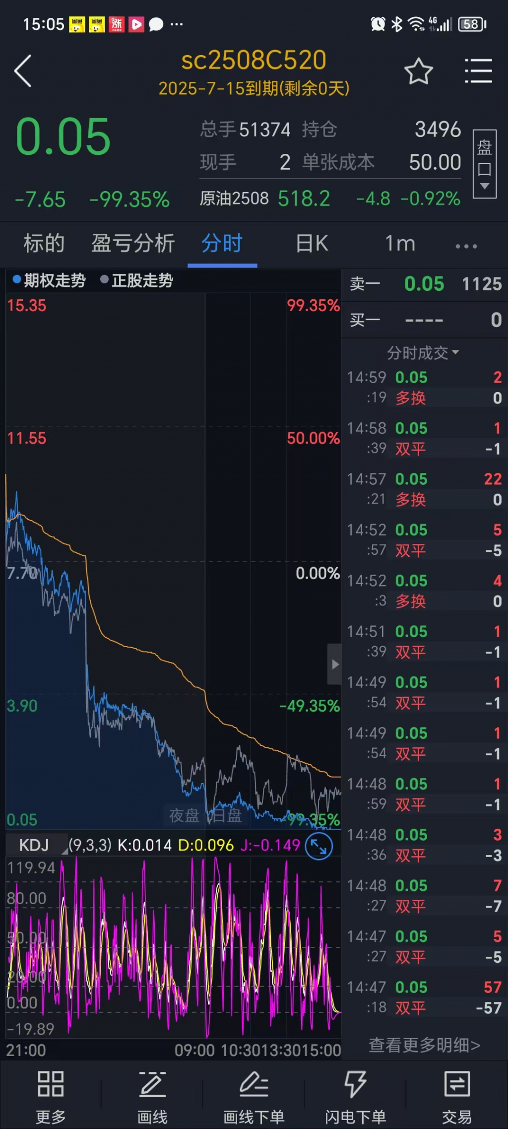 认沽的卖方如果对方不提出行权的话,岂不血赚7月15日收盘后,SC2508结算价为522.2,SC2508C520属于实值期权,内在价值为2.2,且当日为期权合约的最后交易日,结算时期权合约自动行权,所以在不考虑手续费的情况下,你以520的价格获得一手SC2508合约。
