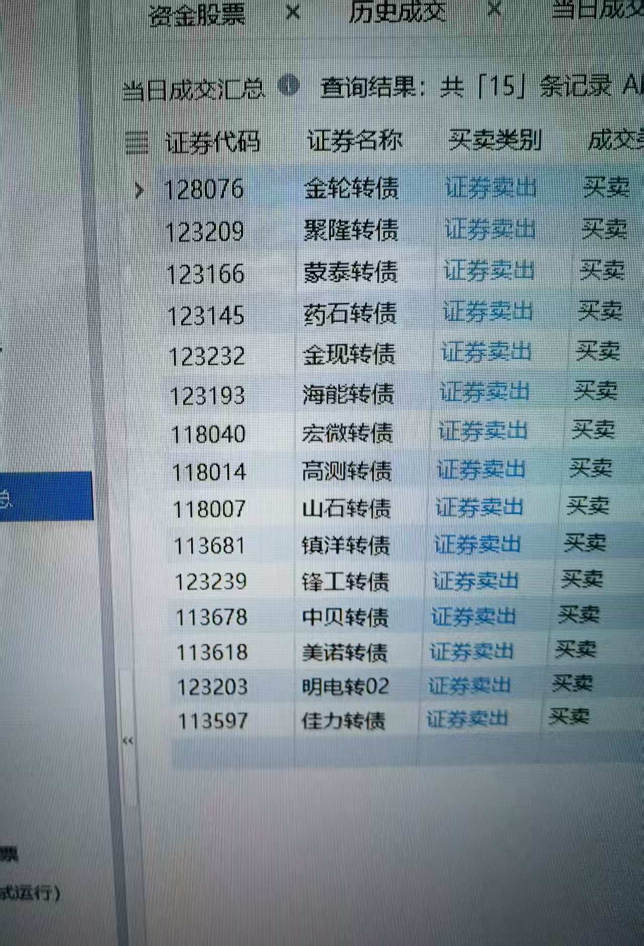 转债情绪强的一逼,没啥低估品种可接回,尾盘买回了金轮 和海能,金现接了部分就起来了,就当减仓了,下午 美诺和易瑞 都起来些,顺势卖少少,全天净减仓了8.3万元...
