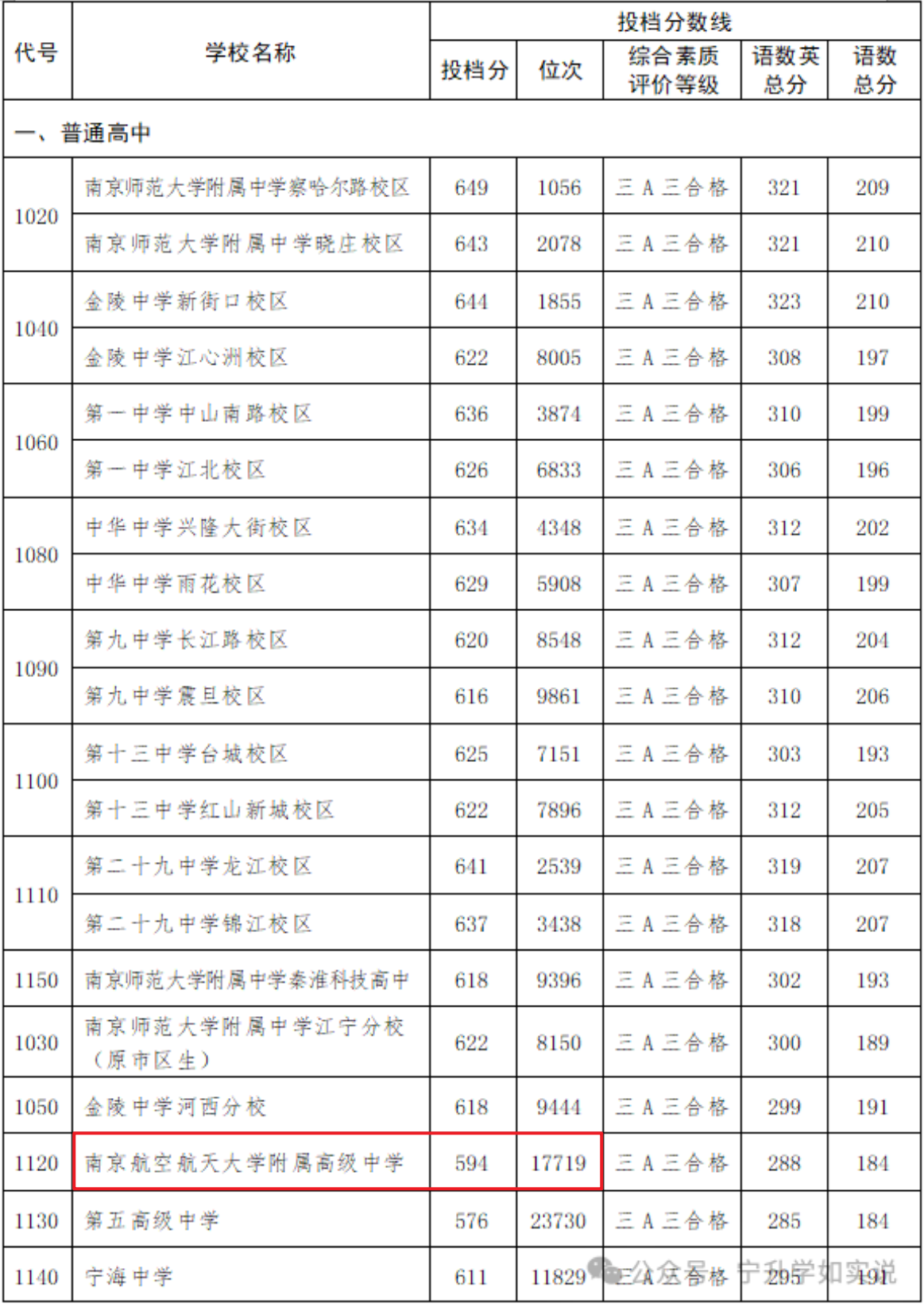 大概是因为这个学校自主招生吧,表格里是参加南京市统考学生的按分数进的学校。