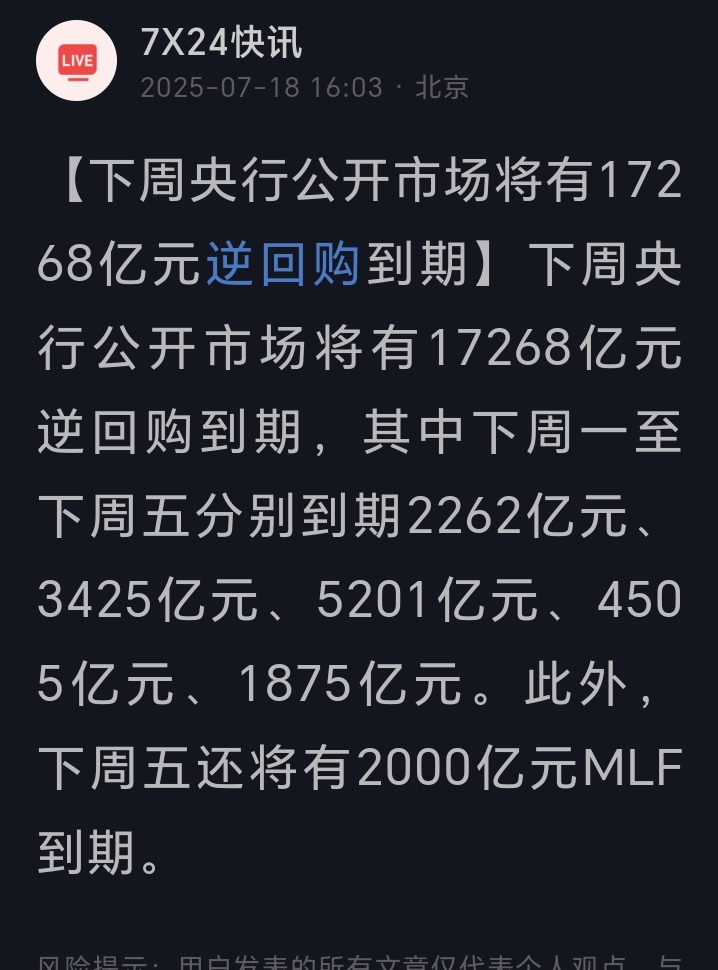 有一个疑问,据我观察,逆回购到期市场大部分都是跌,如果这个成立。下周市场恐怕要回调。