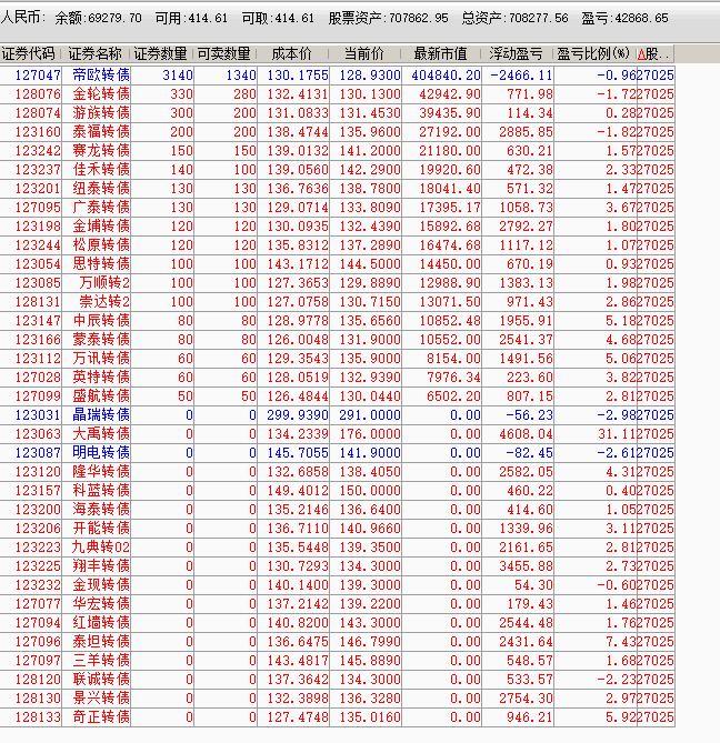 基于此,今日操作以减仓或清仓高溢价转债、转股价值超130且偏离度大的标的为主,后续计划以观察为主,伺机配置确定性较高的标的。