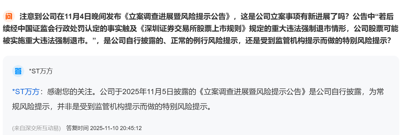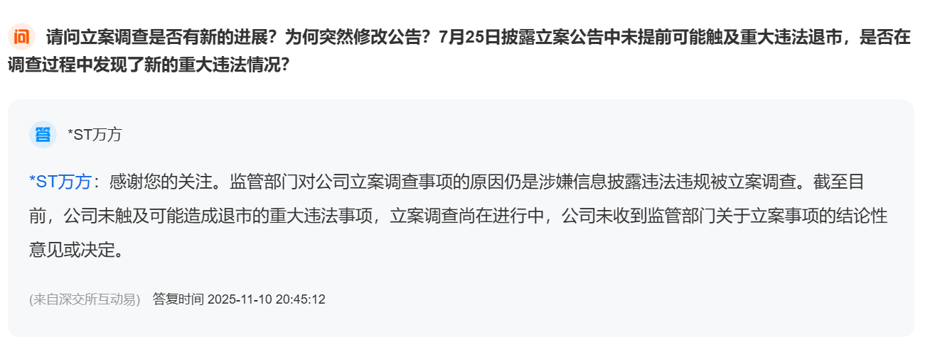 现在市场对行政处罚非常敏感。看了下ST万方的K线,