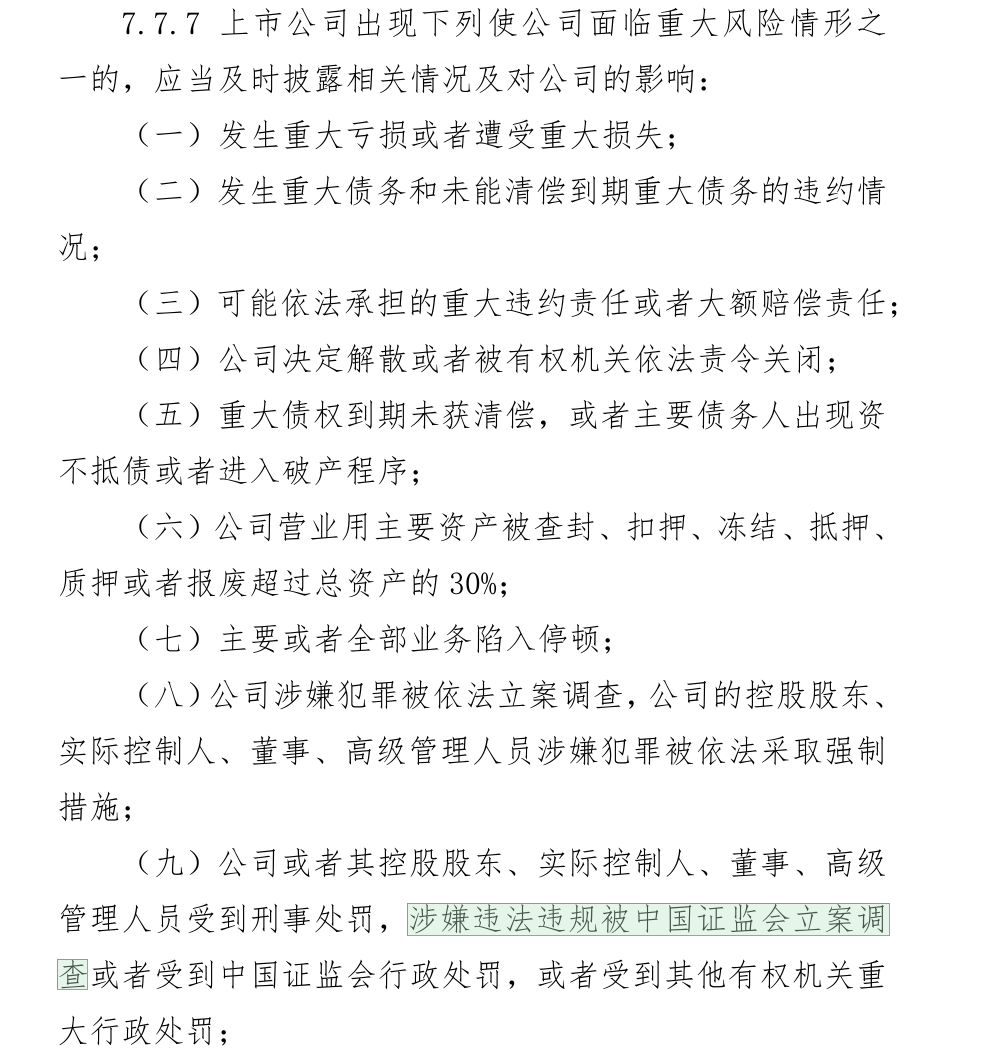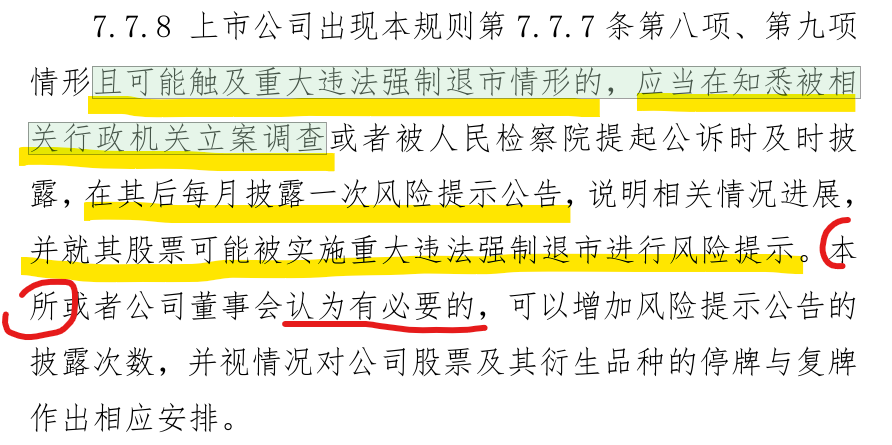 其中有“公司股票可能被实施重大违法强制退市”的表述