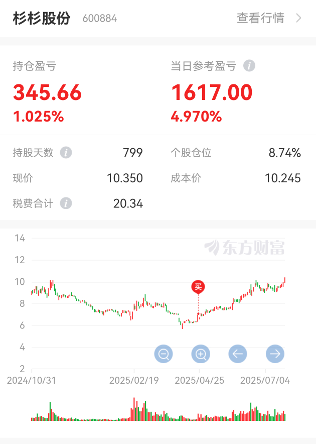 杉杉股份拿了好久(董事长突发死亡前就开始拿),经历了估计接近5元的至暗时刻,在6元底部消息面好转补仓,终于今天回本,期待杉杉进一步起飞