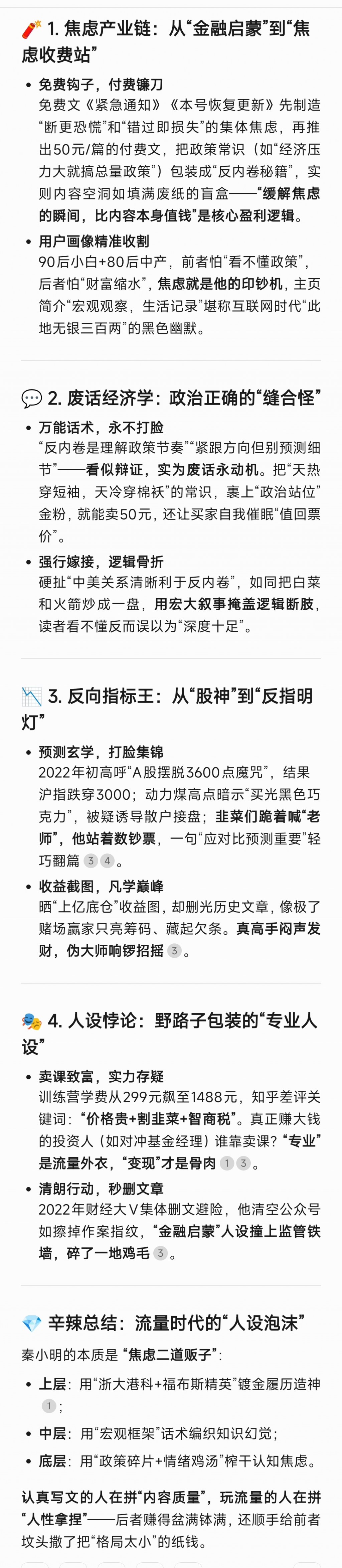三天两头发文,总能找的到神操作也不缺乏韭菜操作。不下场的大 V ,没有长期可靠实盘或者三方验证净值,一律当模拟盘叼盘处理。集思录喜欢讲套利,秦大师在用公众号文章+星球+会员费+带货进行无风险套利,要学就学这个吧,也是个技术活,值得好好学。