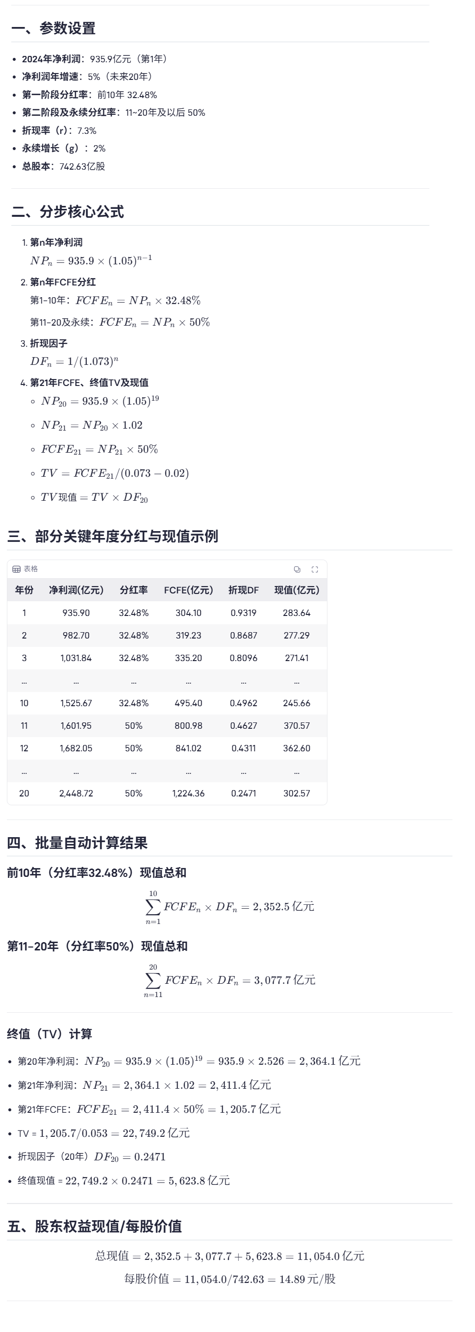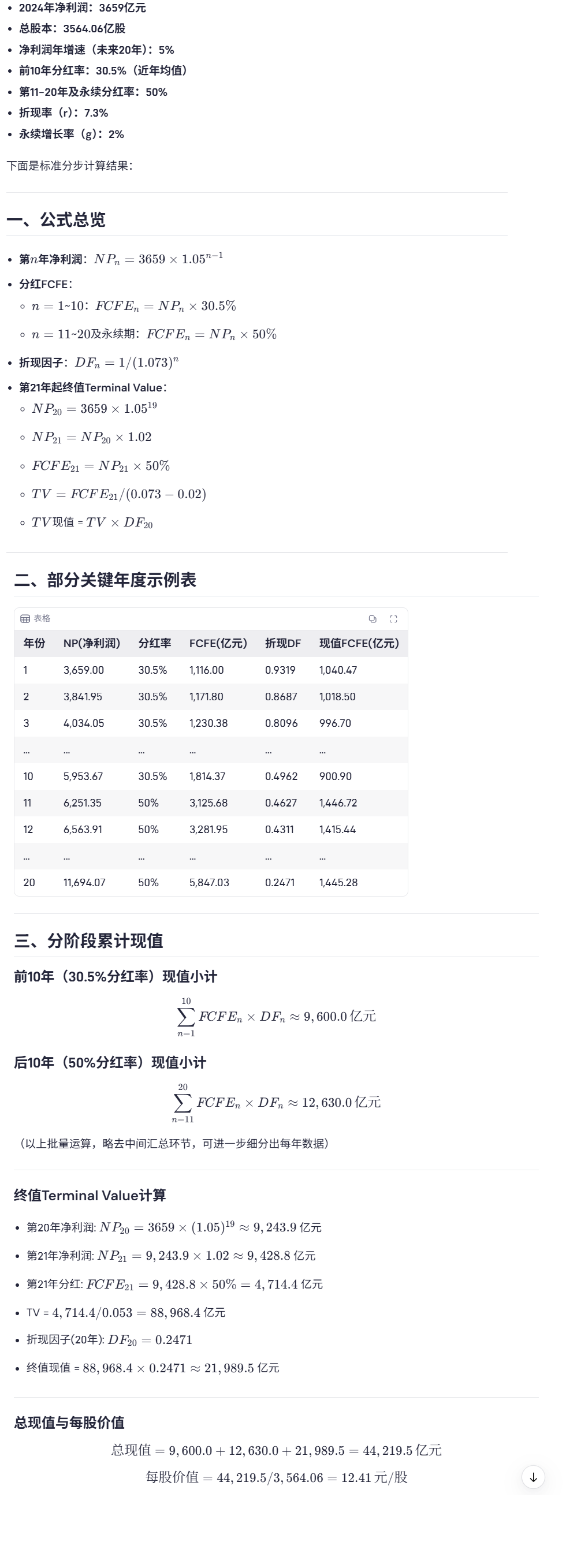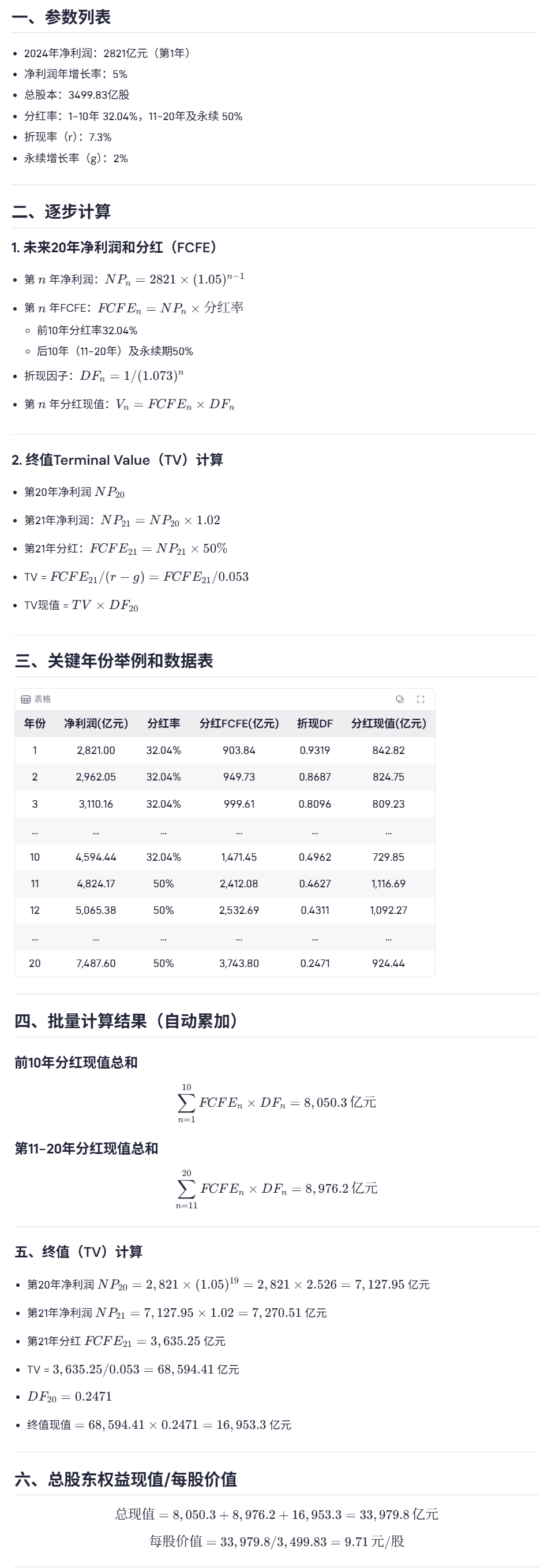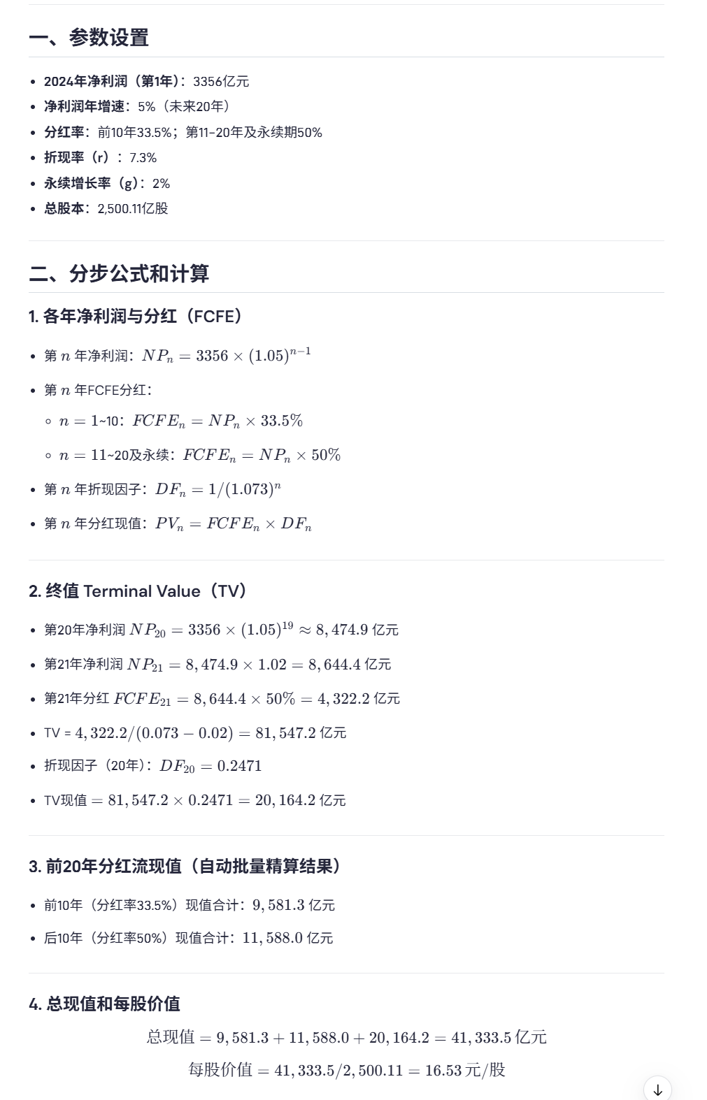 如果将未来20年的净利润增长率调整为2.5%,则各银行的估值变化如下: