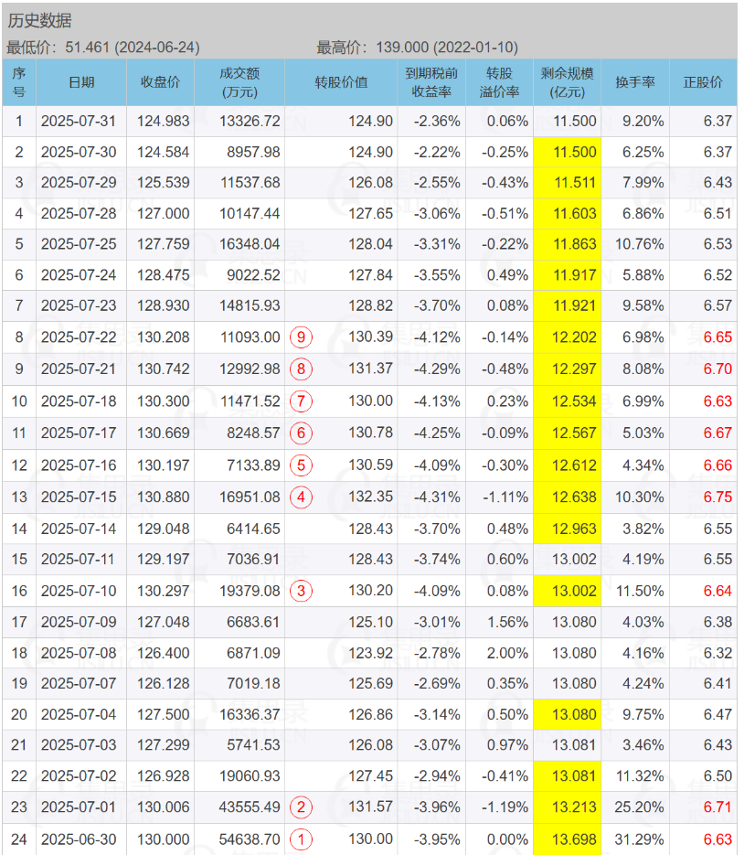 我觉得不强赎的概率不小,强行拉太难了,太多埋伏的,不如下砸一下,把跟车的都赶跑,每天折价转千万左右,过个一个月就10亿以下了,还有2年多时间,甚至后边搬砖到5亿以下,肯定溢价率就不是这个价了,所以我是分批买入,跌1块买一些。