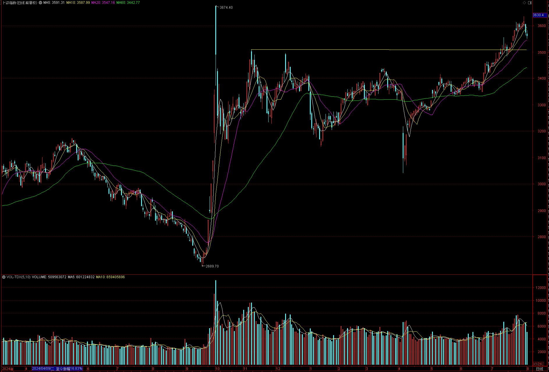 看指数有啥意义 现在主流宽基指数绝大部分严重失真了 创业板我看创业总值 科创板我看科创总值 北交所我看北证总值 这些指数相对还靠谱点 建立在严重失真的指数上面的技术指标都是严重偏离的 也没啥分析价值了 我现在就看周成交量额 成交额跟不上 中期行情才可能出现逆转你说的对。但上证指数是个社会情绪指标,上证只有在过4000、5000时候各类媒体才会铺天盖地报道,门口卖茶叶蛋的才会兴奋不已,大家都会奔走相告。。。靠镰刀互割、老鸟互掏是破不了前高的。所以,上证这个失真指标其实也蛮重要。