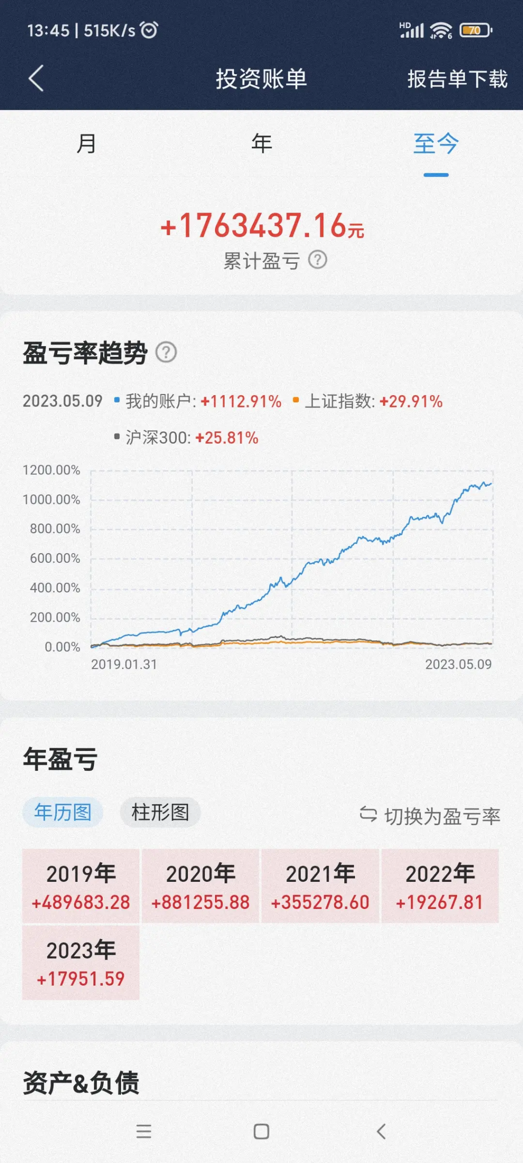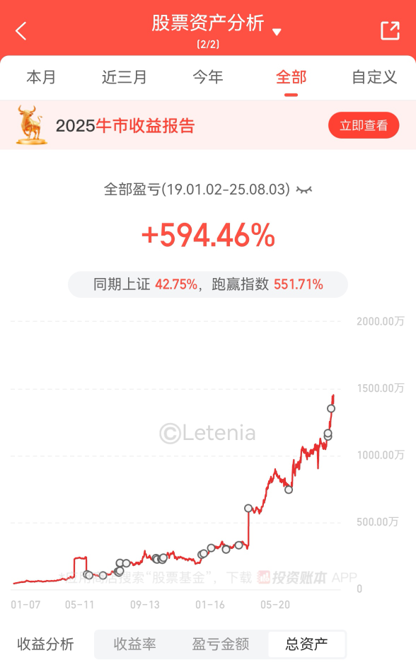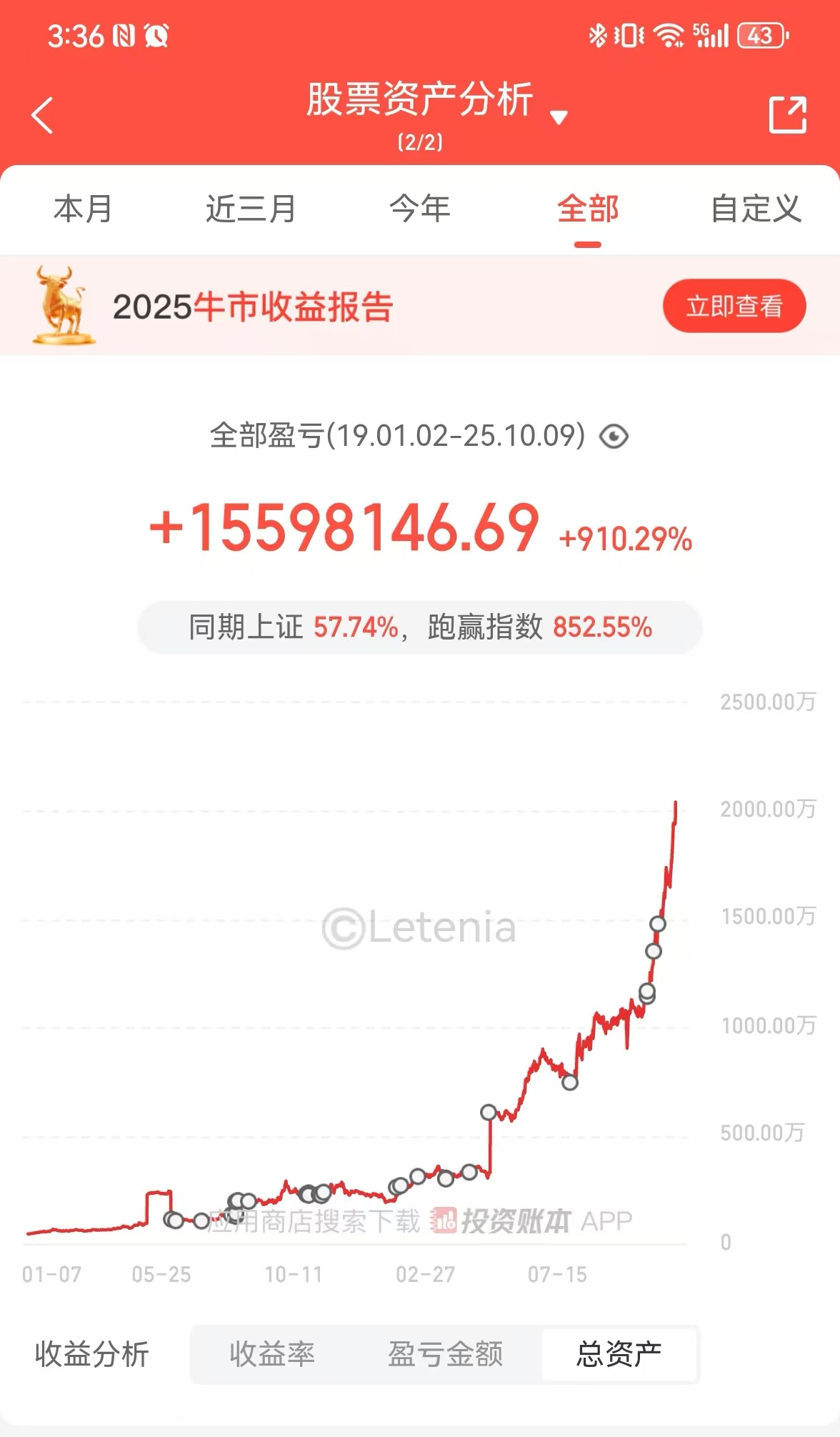 按照楼主的说法他主要分三个阶段,第一是14-19年交学费阶段;第二是19年开始100W四年3倍。第三是23年10月至今一年半接近3倍。。。