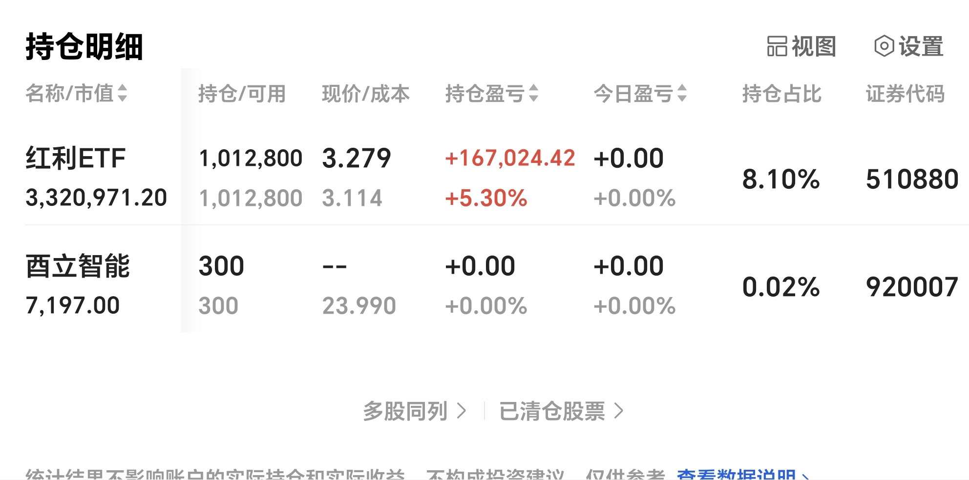 o 你账户的整体盈利百分比。