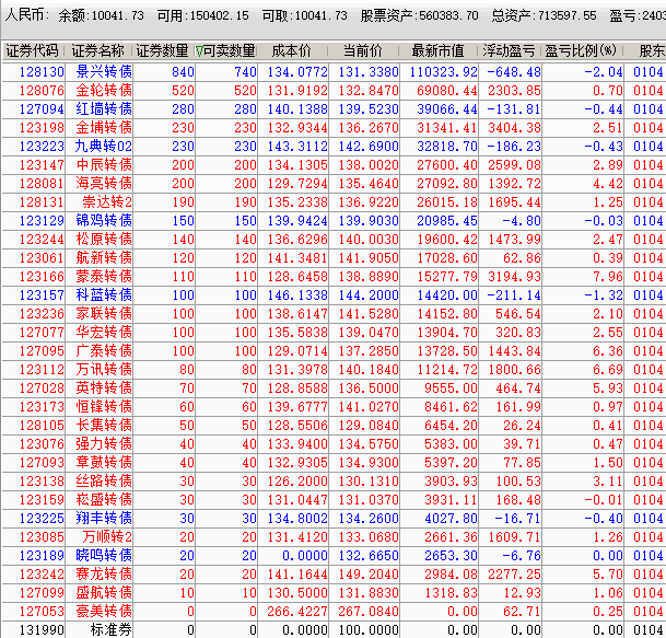 今天加仓景兴,主要逻辑,第一,景兴转债130附近,溢价极低,因为还有3天就要大概率强赎,市场预期较为一致,低点可控,短期有上冲可能 第二 ,亏损计提1个点,如果市值管理如此有信心,转股值130收场,那是人家水平,认亏出局 风险点在于和帝欧一样,拉长强赎周期,也是认亏出局