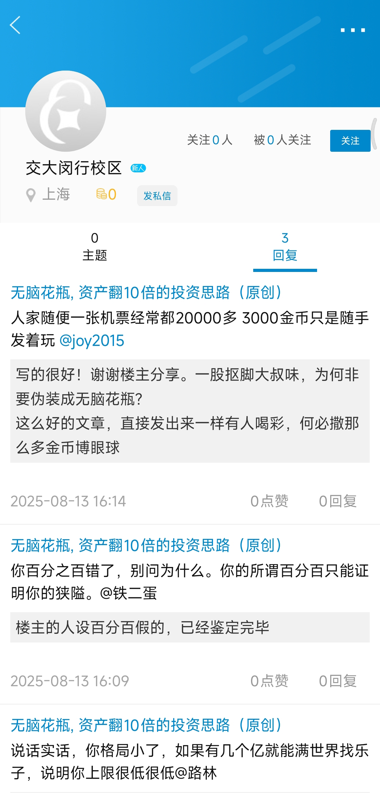 写的还是有些道理,但执行起来难度很大,尤其是大资金不好搞。另:大佬这些心得是在不断摸索中逐渐形成的麽,一般会混什么论坛或小圈子吗?像柠檬大佬一样,讲讲给jisiler“开开眼”呗