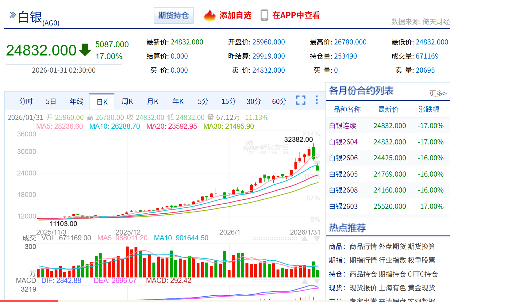 回测了一下沪银2605合约,假定从25年4月7日低点投100万做多白银,不断盈利加仓,26年1月29日,资金达到峰值2.9亿,共持有3029手,白银多头头寸为10.37亿元。一天半以后得现在,还剩下8700万资金,持有1117手。参数设置为,保证金比例19%,资金利用率(风险度)不超过90%。如果从25年12月1日开始投100万做多白银,不断盈利加仓,26年1月29日,资金达到峰值2800万,共...100万变8700万怎么叫亏光呢