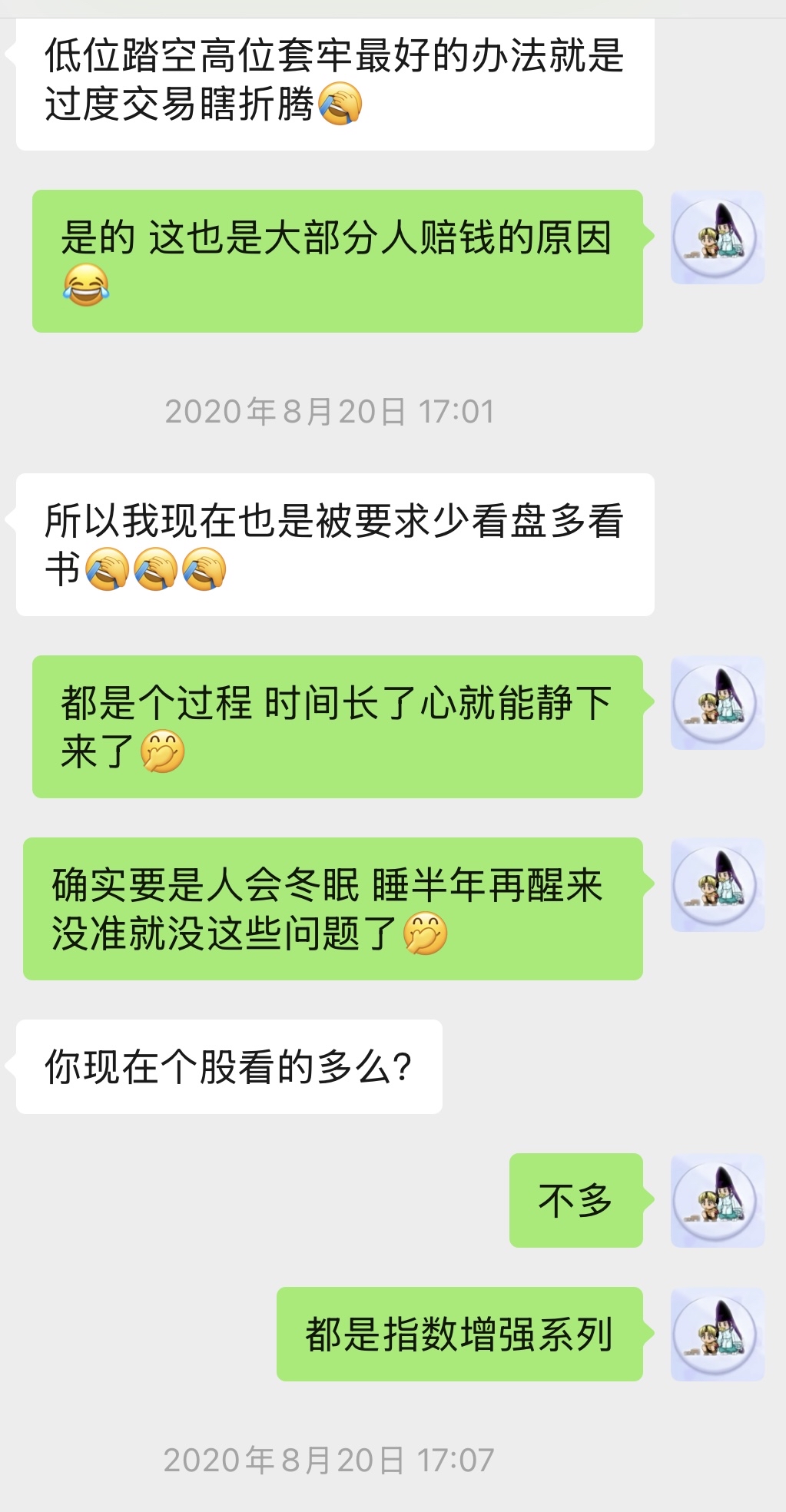 投资最大的敌人还是人性 是自己受不了所以遇到大行情 如果控制不住自己 还是得启动我发明的坐牢大法 根据预测的行情大小和持续时间 去拘留所里待上一样长的时间 中间没得看也没的操作 出来之后清仓走人剩多少算多少还能额外赚笔代坐牢的钱