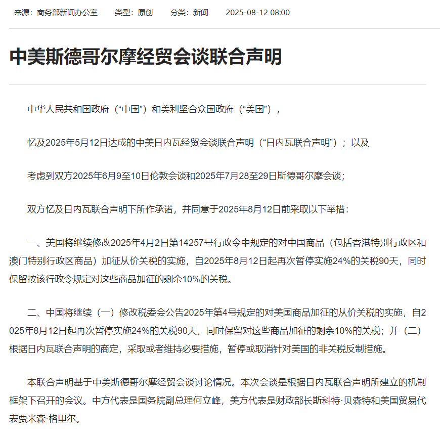 5月份的谈判是双方对等加10%,另外24%推迟90天,也就是8月12号恢复。现在还没有继续延期的消息,市场对这个不管了?