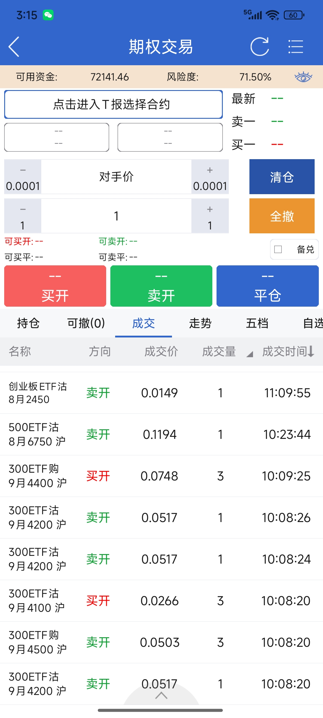 今日上证指数3728.03。真TMD强,前几天卖了一个实值购,期待回调,然并卵!今天看大盘涨的这么猛,终于忍不住了,买了300几手牛差,随着大盘就一个回调,气的我一口老血喷出。也希望能被我这下买蹦,好拯救我的熊购! 是不是等大部分,空头都转多头了,市场就开始向下走了?哈哈,我一早起来挂了100张多单,现在微赚,明天是不是要把我送走
