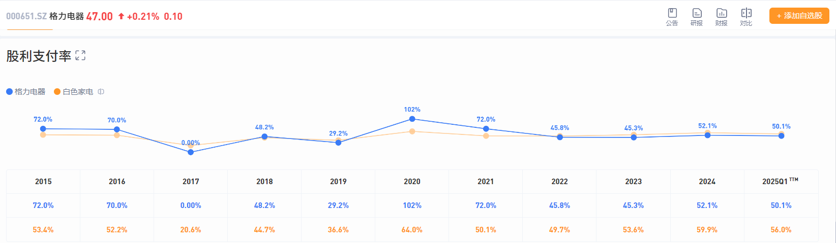 好公司这回不看茅台(当然看茅台也完全没问题),看个长期高分红回馈股东的优等生,格力电器: