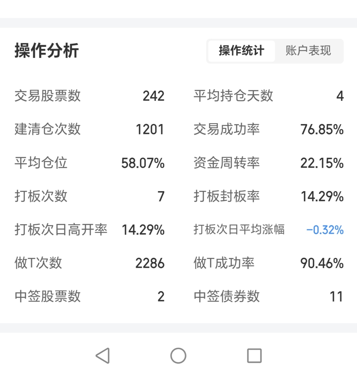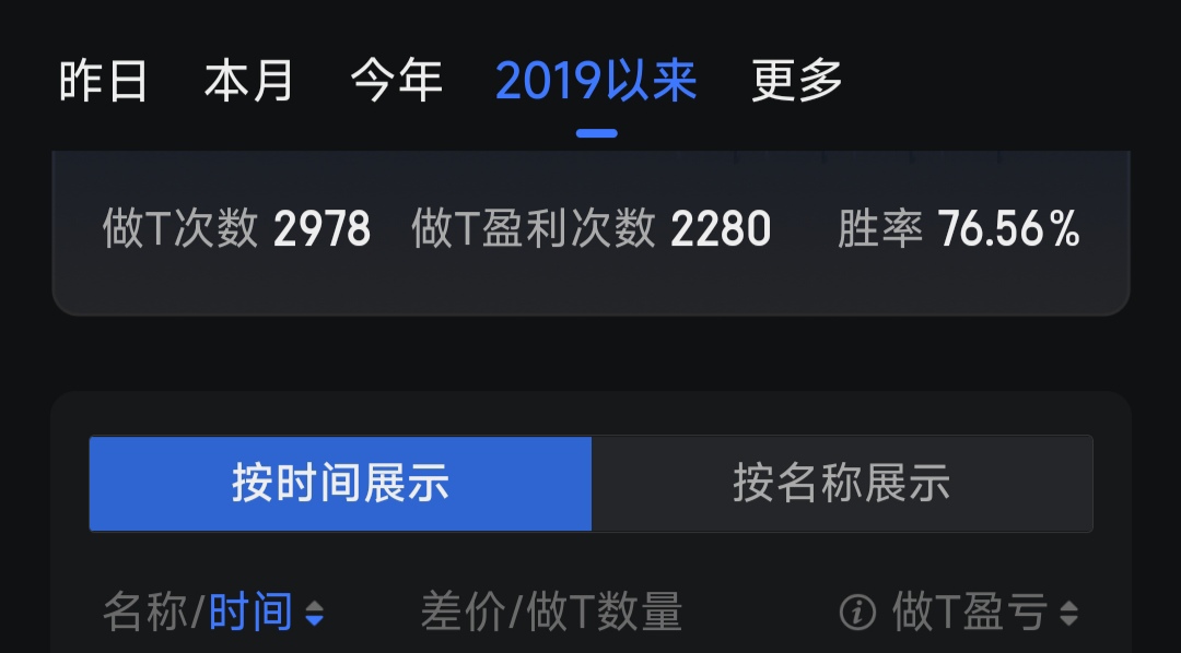 没错,T一次2.5元,就算平均每天100次吧,大约250元,一年大约6.25万元,也就是年化12.5%。至于风险收益比,我个人认为看什么标的。就拿洽洽转债来说,深度债性到期保底116.8元,最多亏几毛钱,十天就T回来了。正股资产负债率不高,高风险不存在的。明年初之前都不会下调转股价,也不可能涨太多,上下空间都卡死这几个月肯定就是箱体震荡走势,这种标的最适合做T,当然,如果到11月或者12月份还是...您好,请问您这样一天下来买和卖的总额 120 万左右,是您的资金 50 万的 2.4 倍对吗?是否太频繁了?您大概什么时候开始做的,做到现在年化收益率大概是多少能告诉一下吗?
