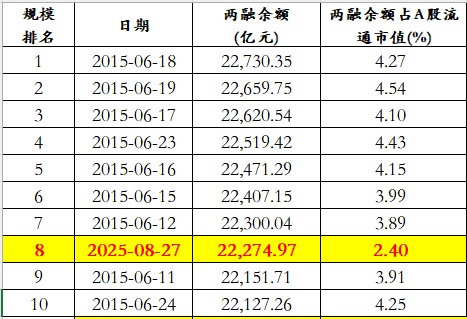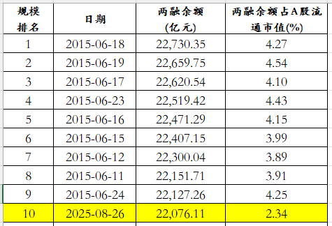 8月26日,全市场两融余额22076.11亿元,规模冲进历史第十高位。