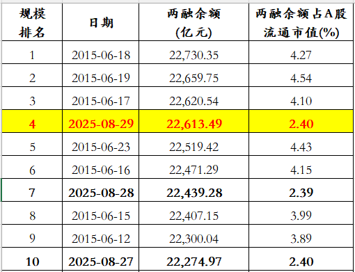 8月29日,全市场两融余额22613.49亿元,较昨日新增174.21亿元,两融余额再创新高,规模排名冲进历史第4高位。