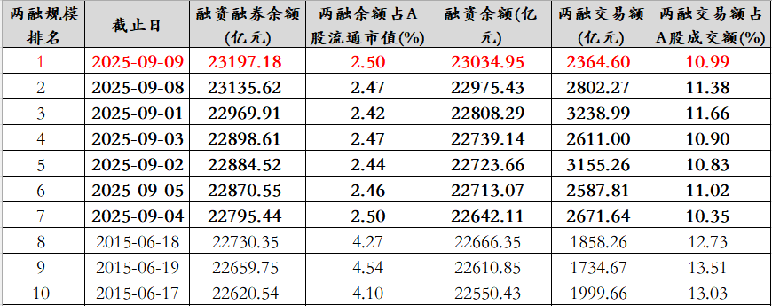 9月9日,A股两融余额23197.18亿,较昨日新增61.56亿,连续两日接连创新高!融资余额站上2.3万亿,9月份两融规模持续保持在2015年峰值之上。
