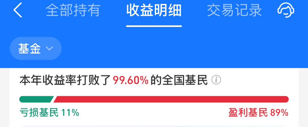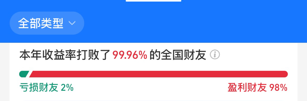 支付宝的统计是抽样结果。我这显示只有2%投资者是亏损的