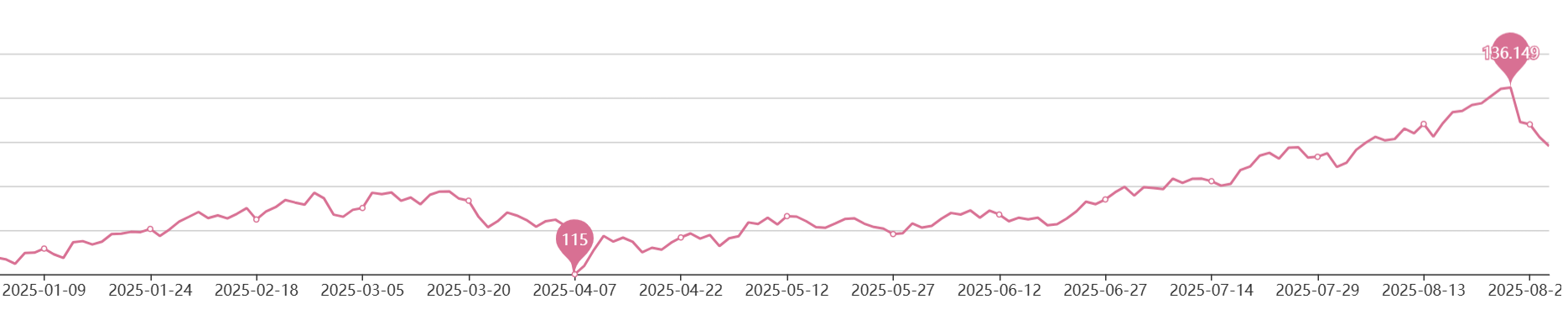 最大回撤率在2024年最高,当时可转债违约情绪被放大低价转债被通杀,其余年份表现优秀。关键是策略在当前可转债价格中位数135新高后,选出的标的还有一定的抗回调能力。