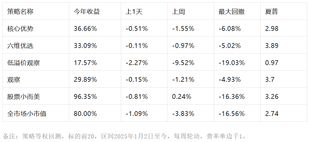 三、股票小而美策略库: