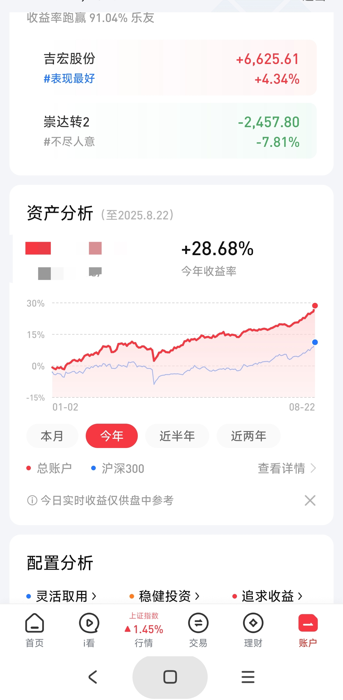 我今天的仓位大概在90%,一般我常年仓位。70以上的。